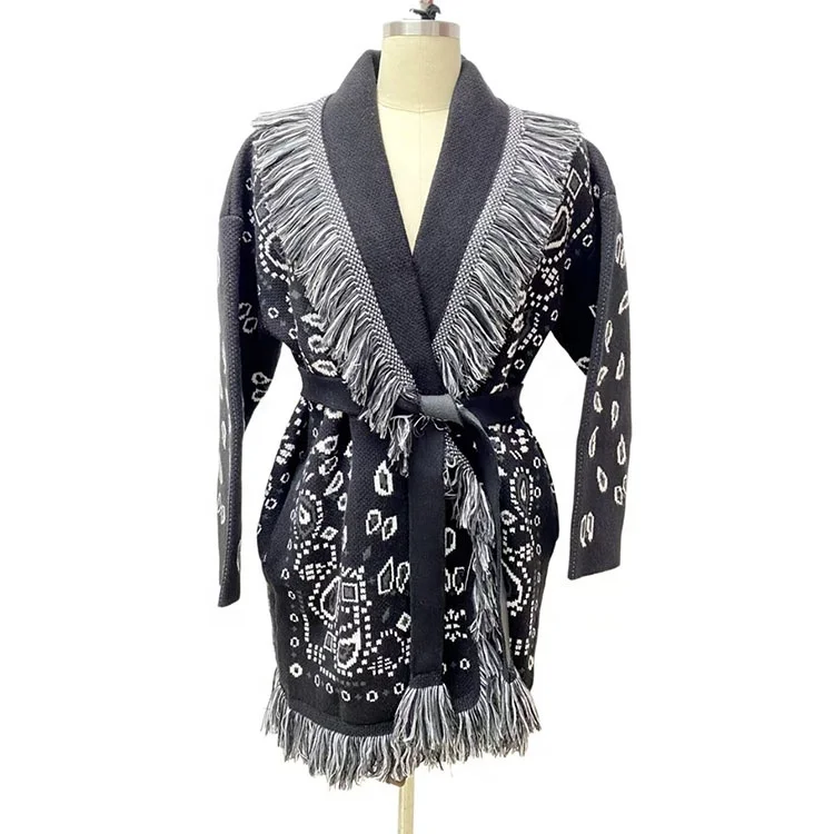 European American Heavy Knitting Jacquard Thickened Knitted Cardiga...