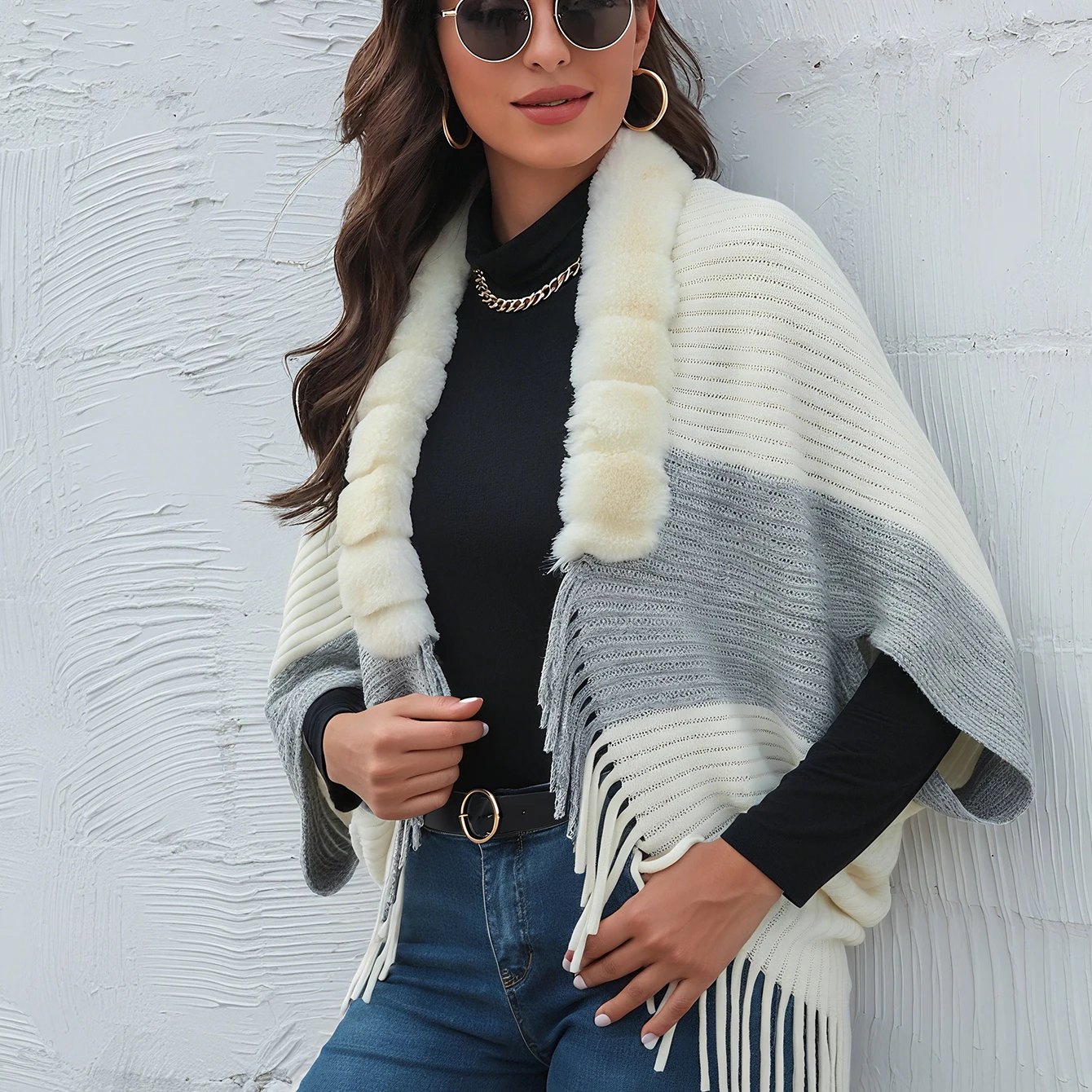 Cloak Knitting Warm Shawl Winter Women Sweater Jacket Coat Cape Fas...