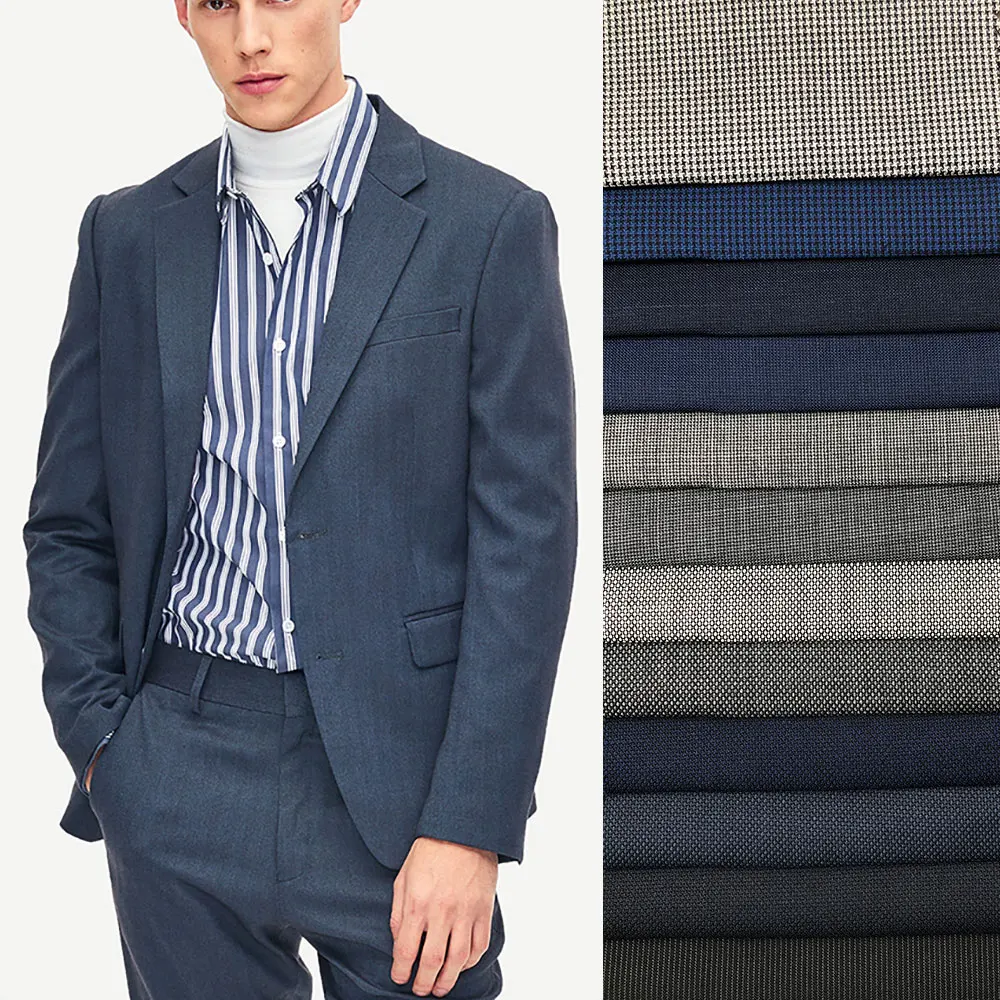 Italian 50%W 50%P Merino Wool Polyester Blend Fabric Woven Techniqu...