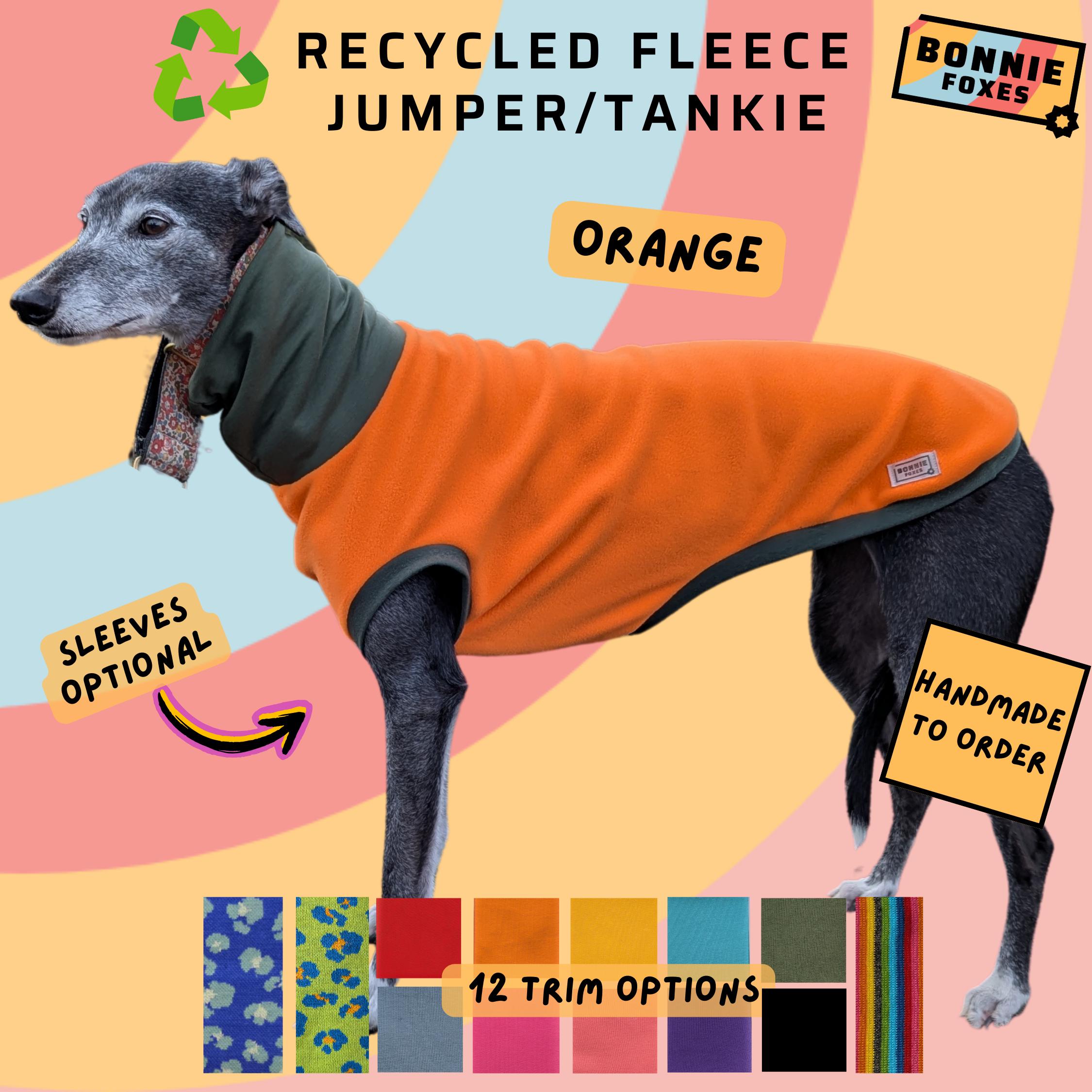 "Bright Orange Recycled Fleece Jumper or Tankie for Sighthounds with your choice of trim. About...