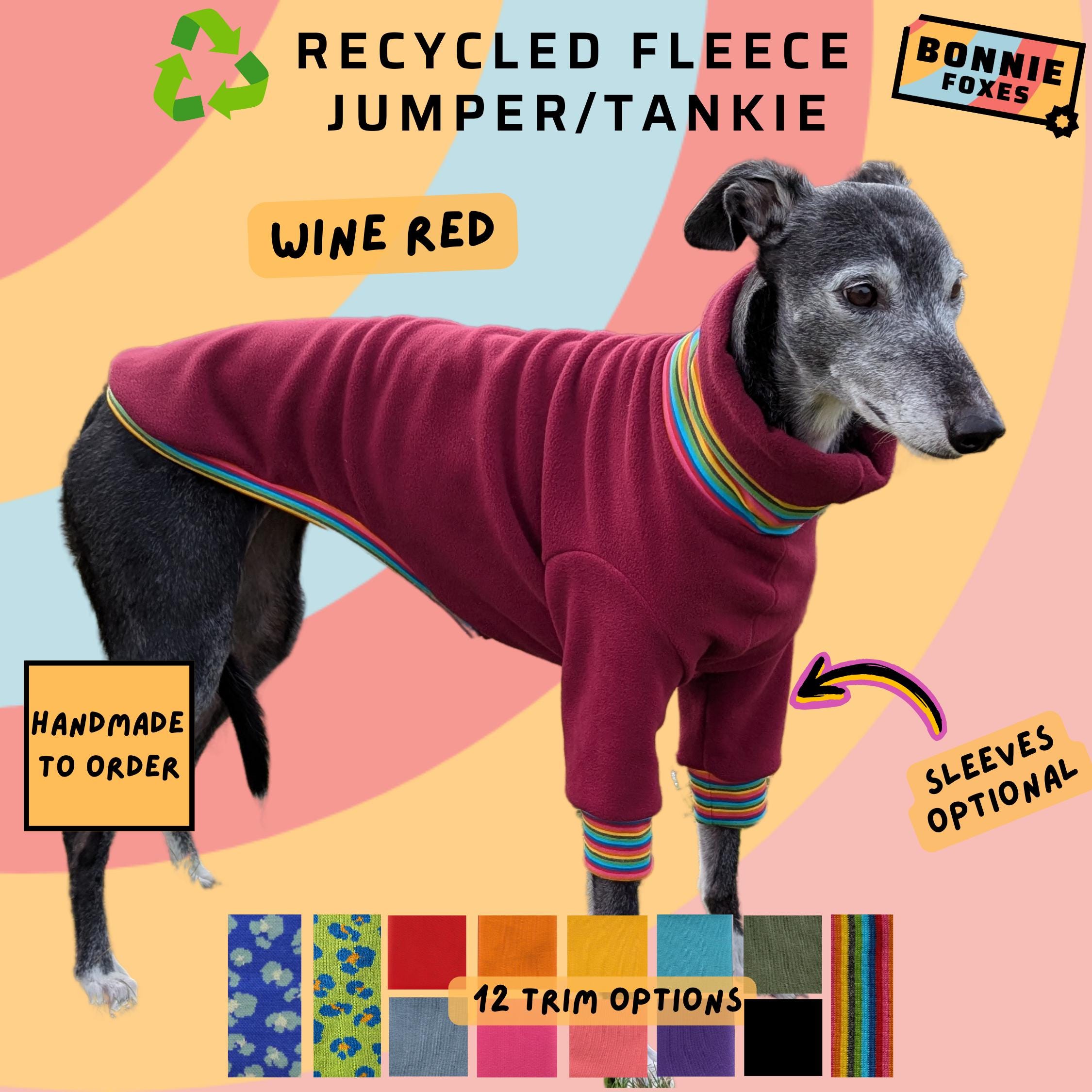"Wine Red Recycled Fleece Jumper or Tankie for Sighthounds with your choice of trim. About Our ...