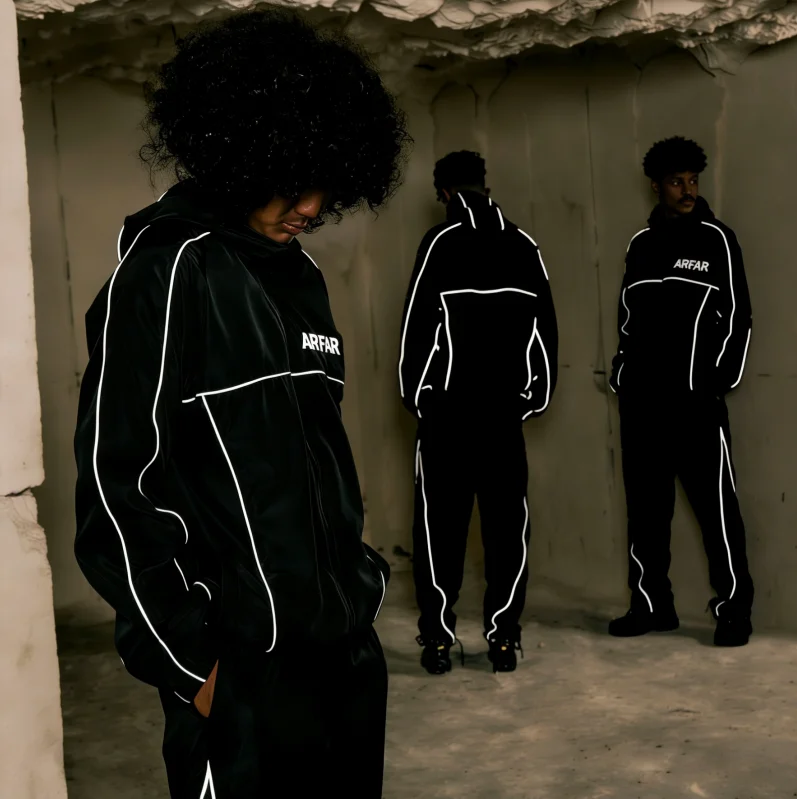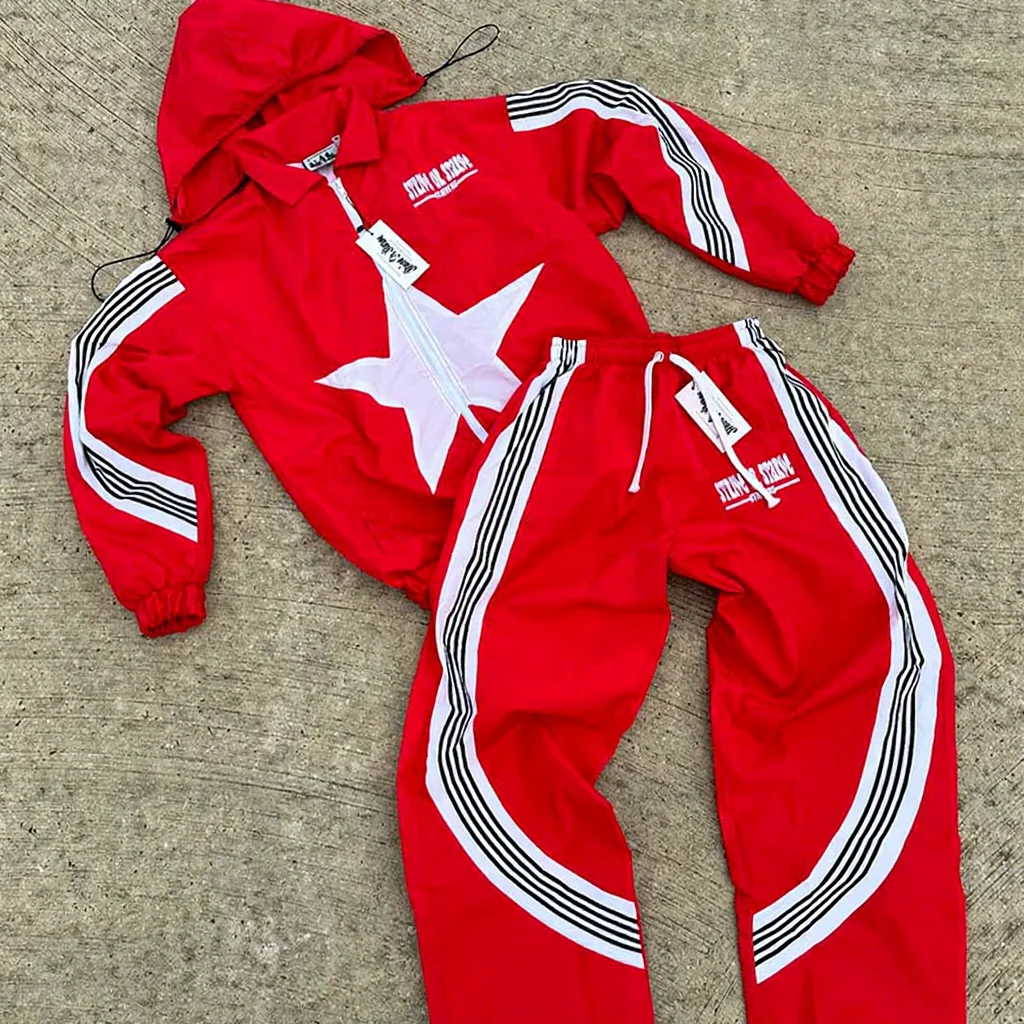 Custom Jacket and Nylon Sweatpants Set Reflective Strip Windproof W...