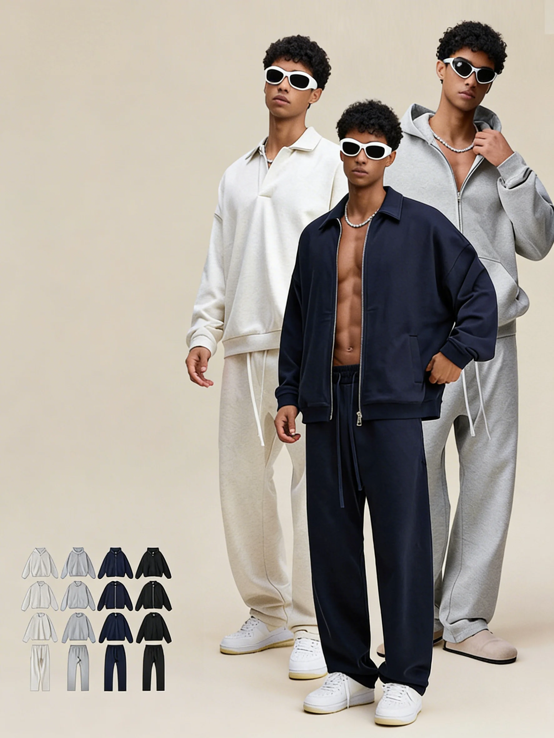 YLS5068 Batik Wash Vintage Men's 2 Piece Sweat Suit Double Zipper H...