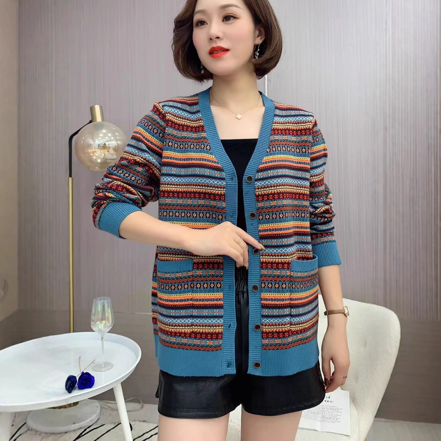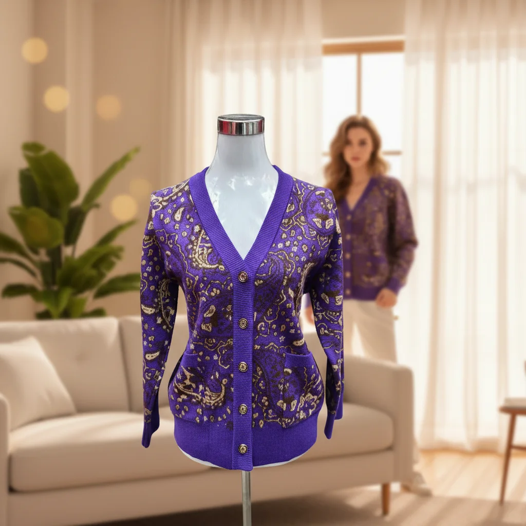 2026 New Arrival Jacquard with Pockets V-neck Cardigan Sweater Knit...