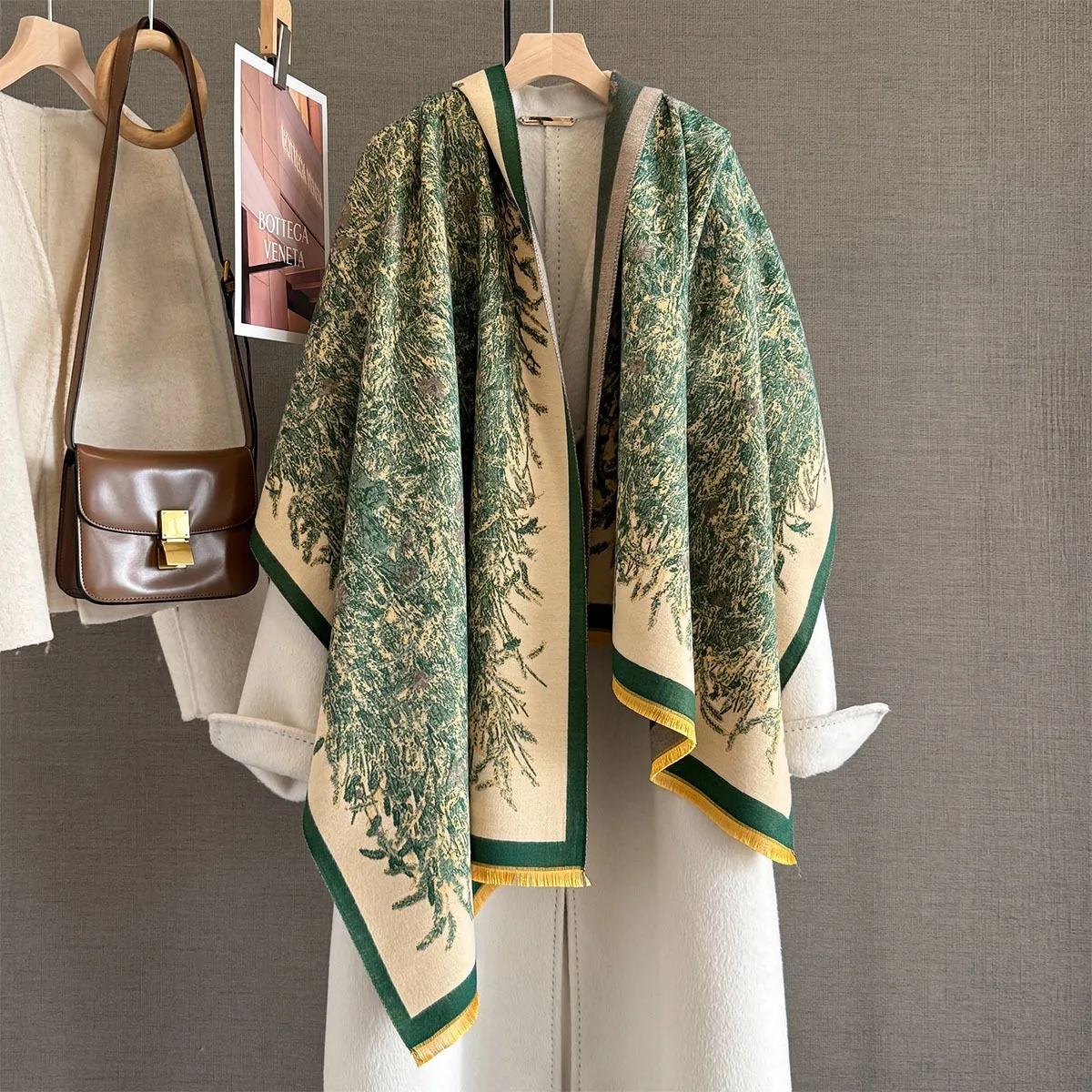 Ladies Oversized Winter Warm Cape Pashmina Shawl with Leaf Pattern ...