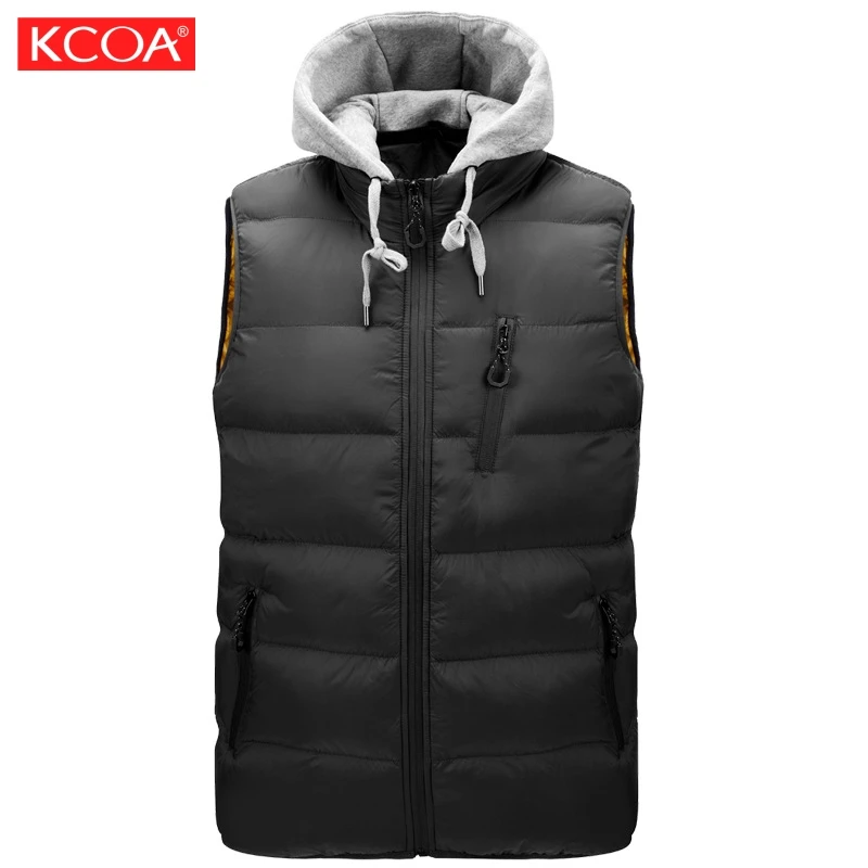 Men's Casual Winter Jacket Solid Sleeveless Hooded Vest Man Custom ...