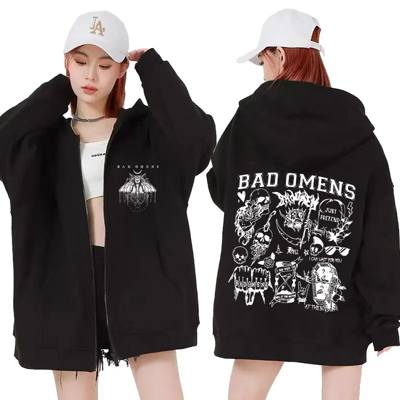 Limited Bad Omens Band Moth Music Tour Zipper Hooded Men Women's Hip Hop Punk Street Zip Up Hoodies ...