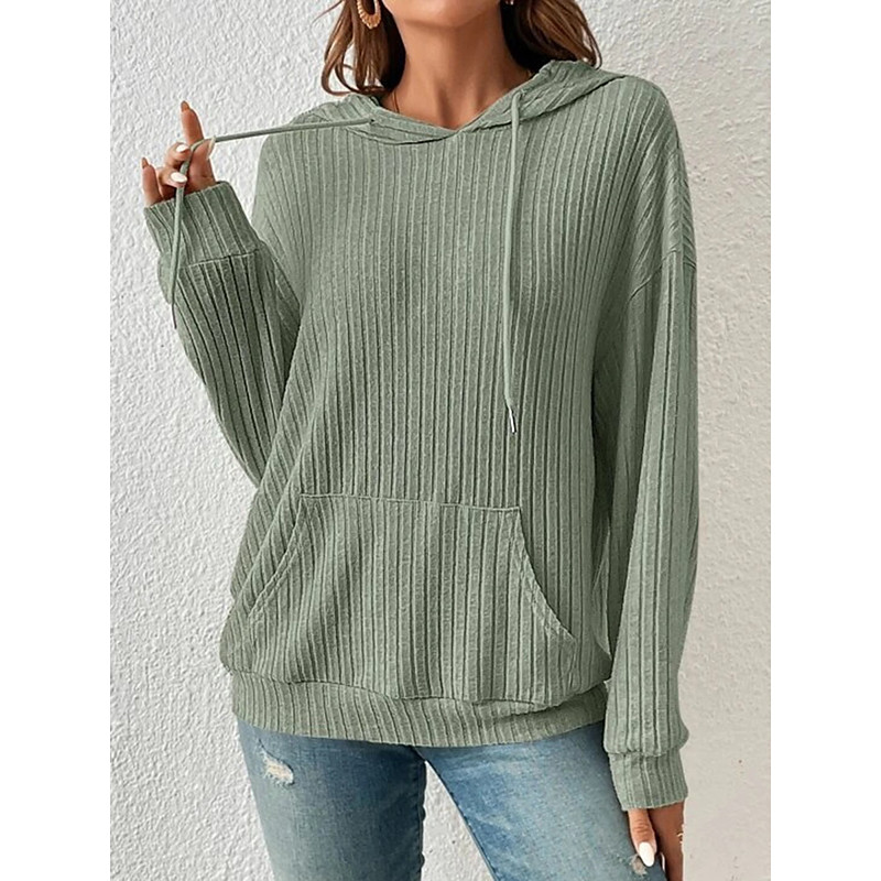 Women's Hoodie Sweatshirt Plain Crew Neck Long Sleeve Black Green B...
