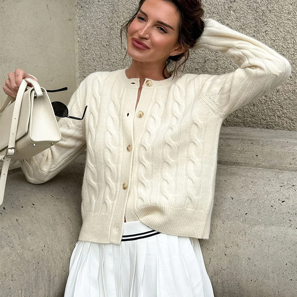 Enyami Women Autumn Winter Fashion Knitted Coat Twisted Flower Knit...
