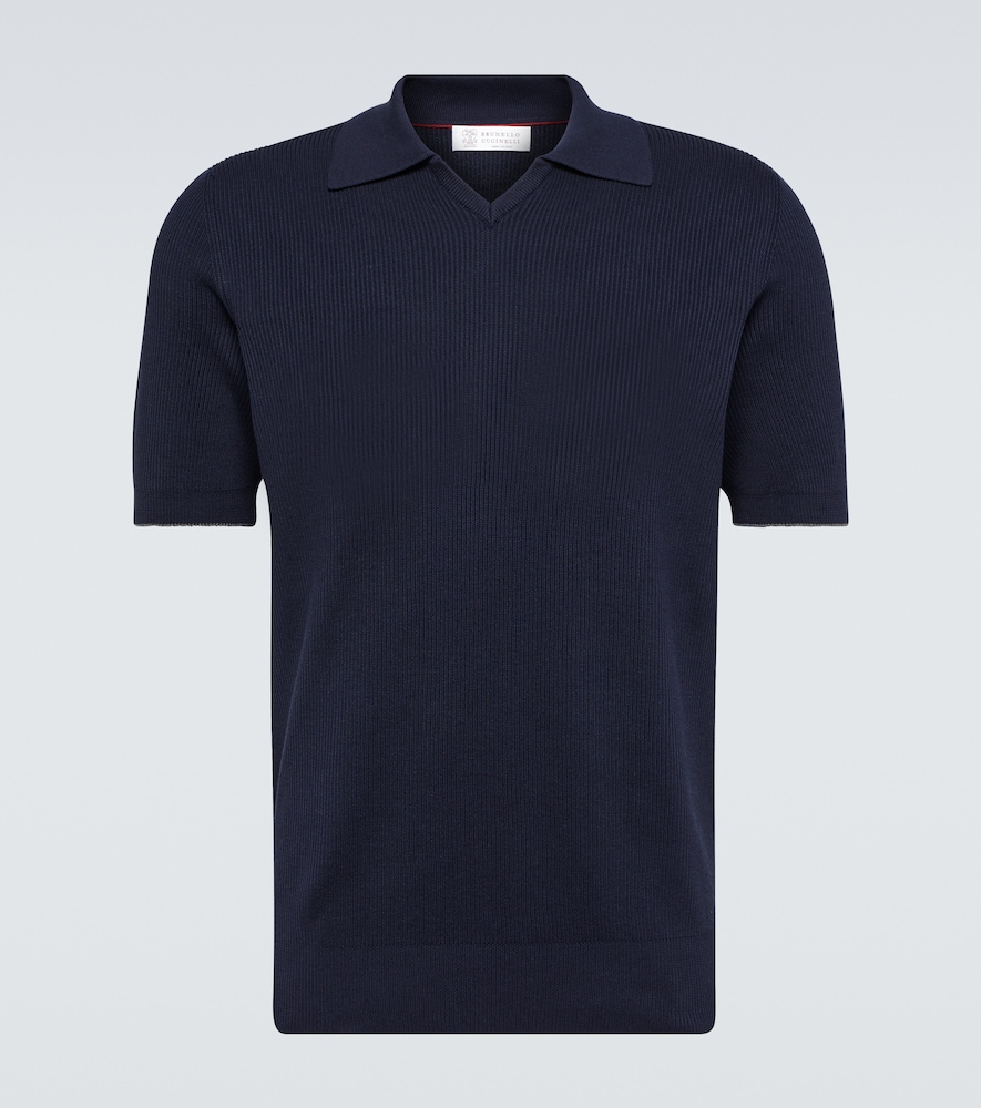 Brunello Cucinelli Men, Ribbed-knit cotton polo sweater, Blue, UK 4...