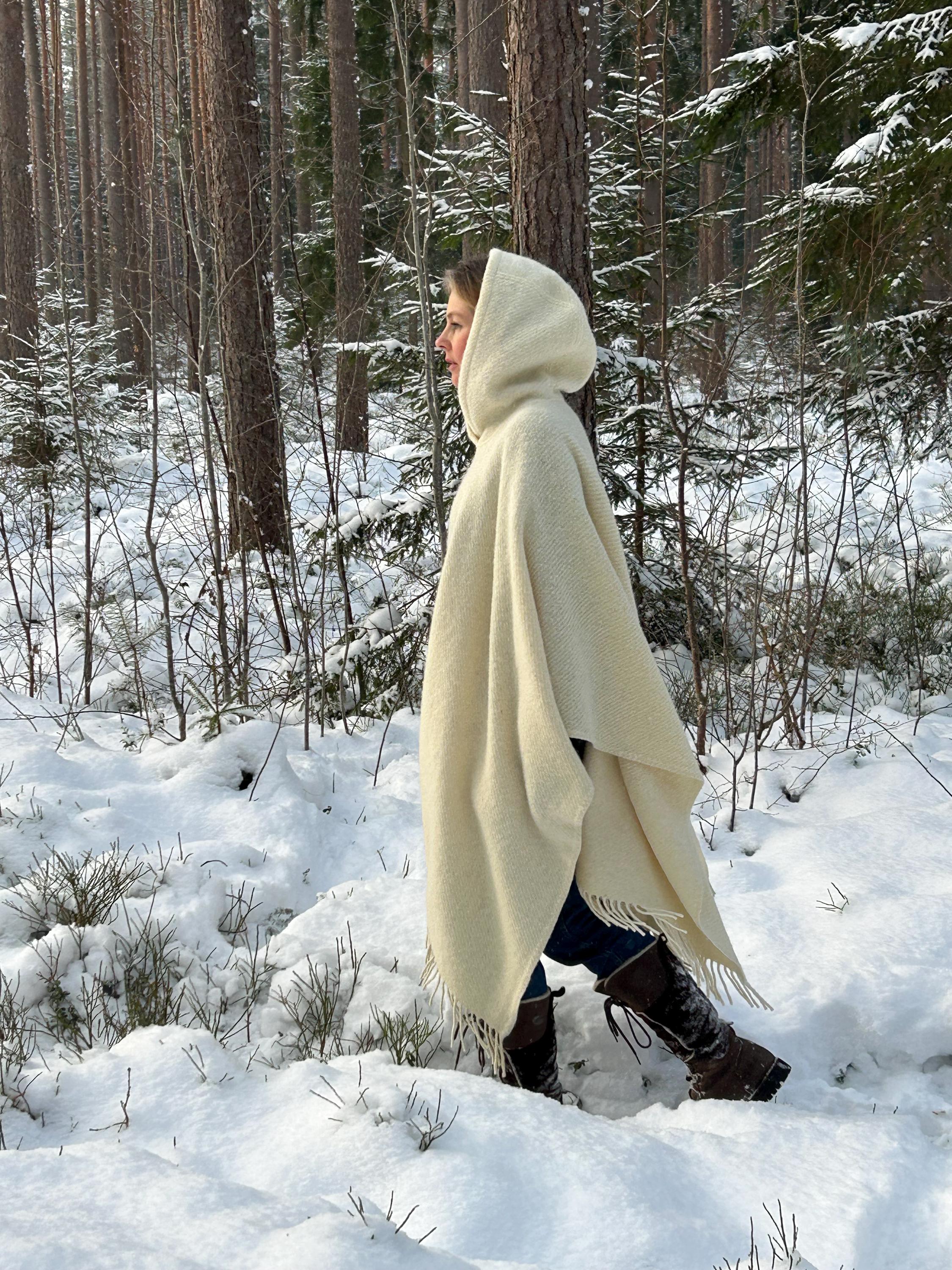Cream alpaca wool poncho with hood Creamy white baby alpaca/mohair/...