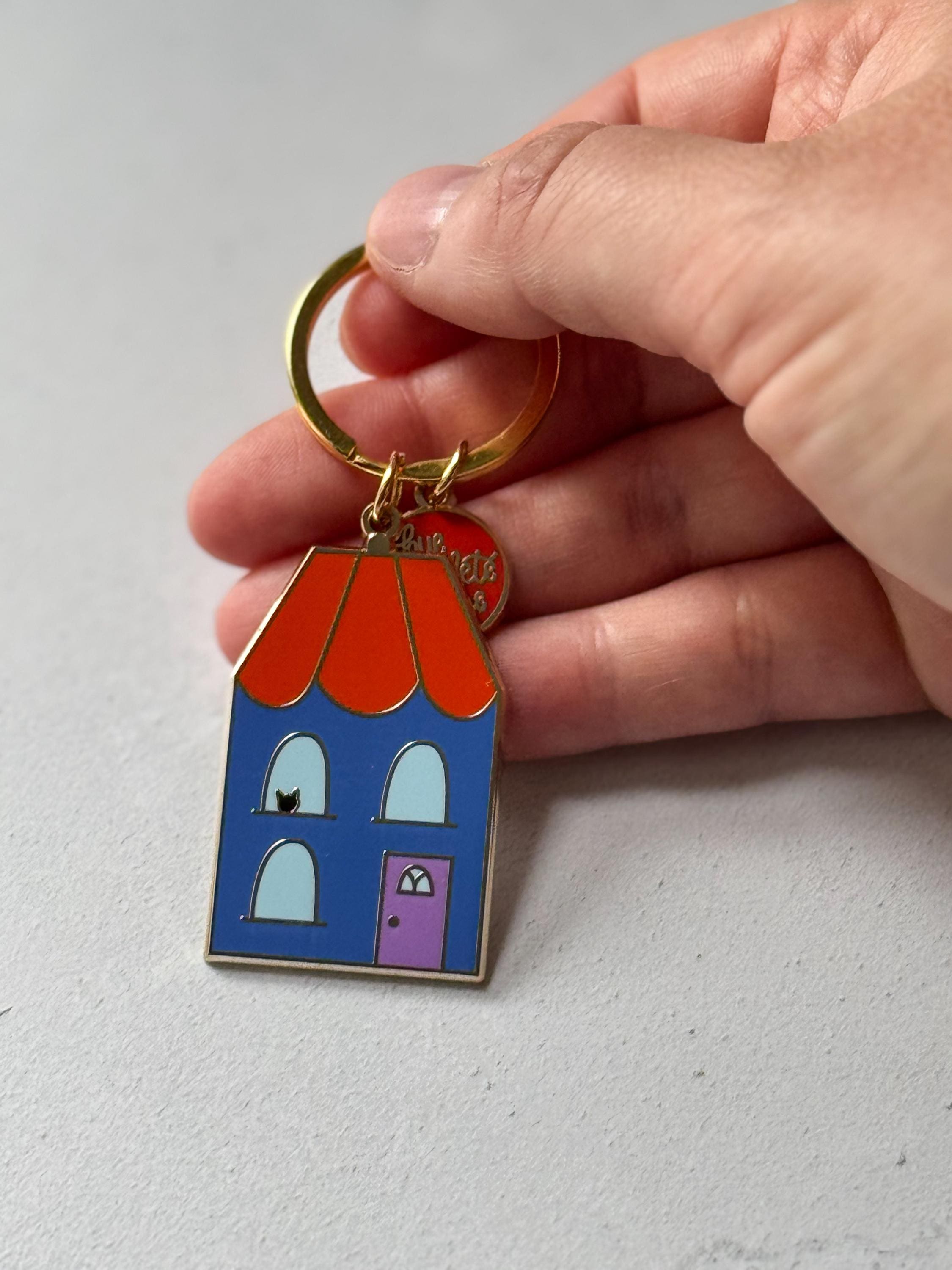 Blue House Keychain with Cat - Cute Enamel Keyring, Cat Lover Gift, Housewarming Present A cosy blue...