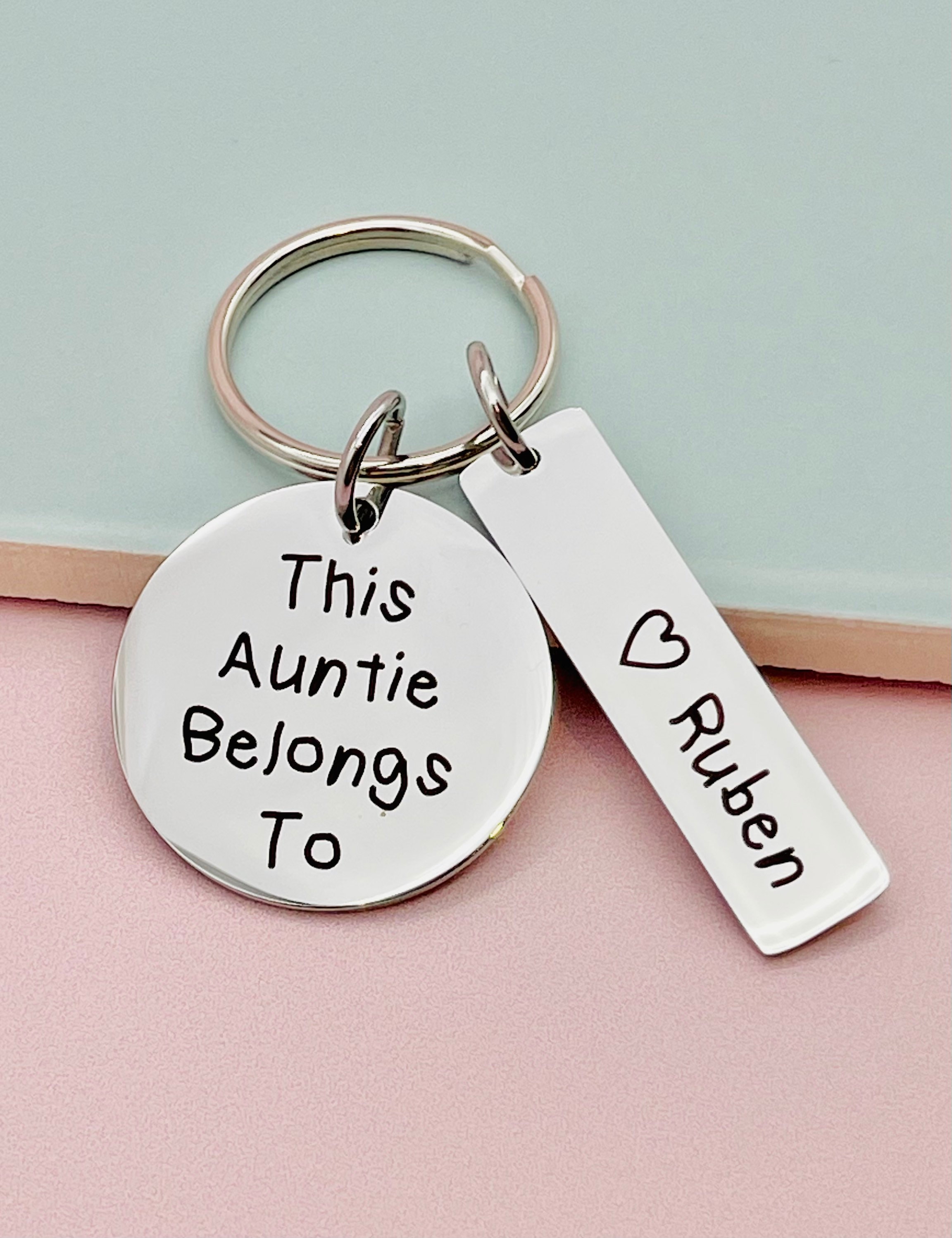This Auntie Belongs To, Auntie Keyring, Personalised Auntie Gift, G...