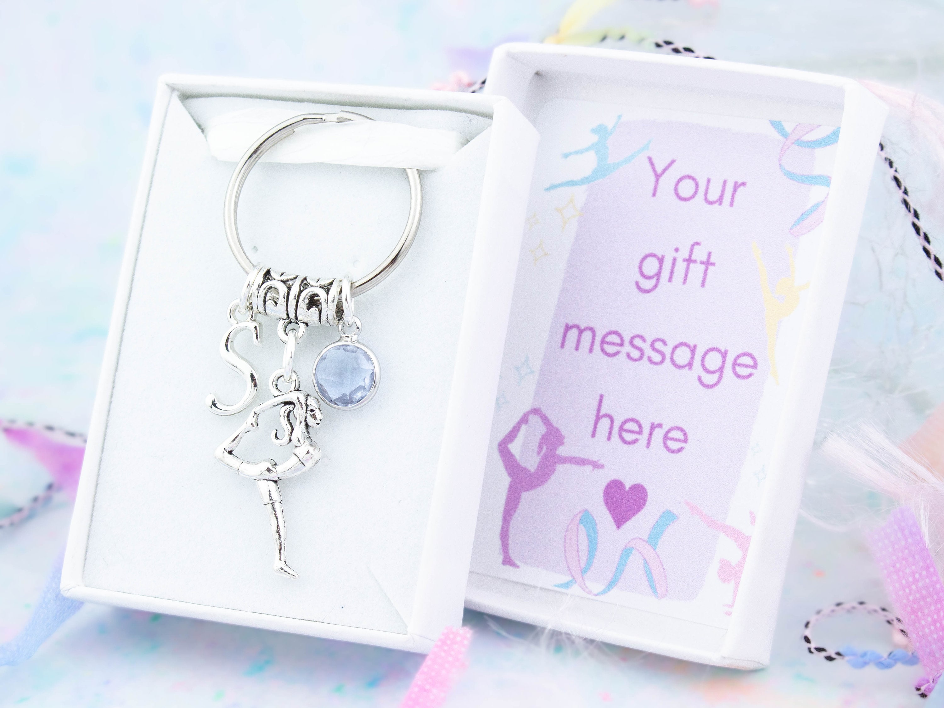 "This gymnastics keyring is ready for you to personalise to make the perfect gift! It features ...