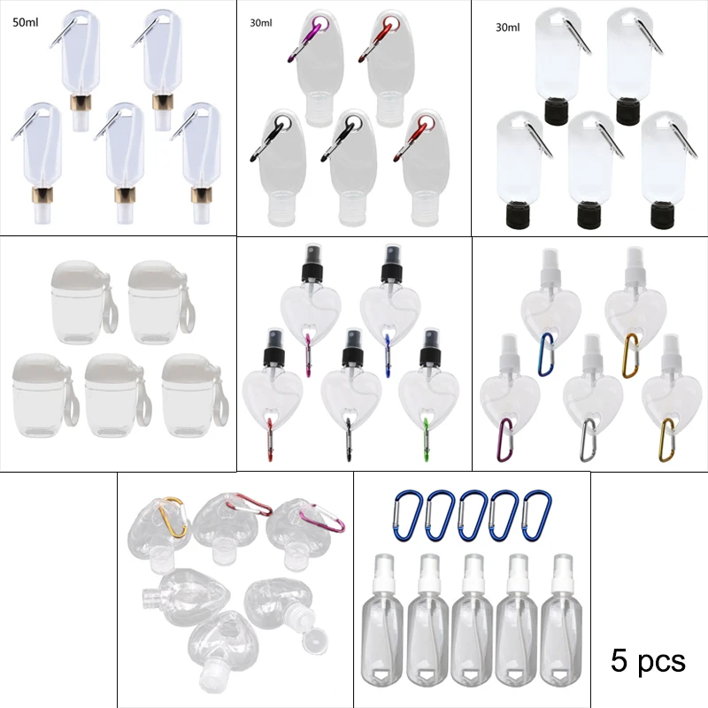 5Pcs Reusable Portable Mini Size Empty Spray Bottle Hand Sanitizer Bottle Travel Small Holder Hook K...