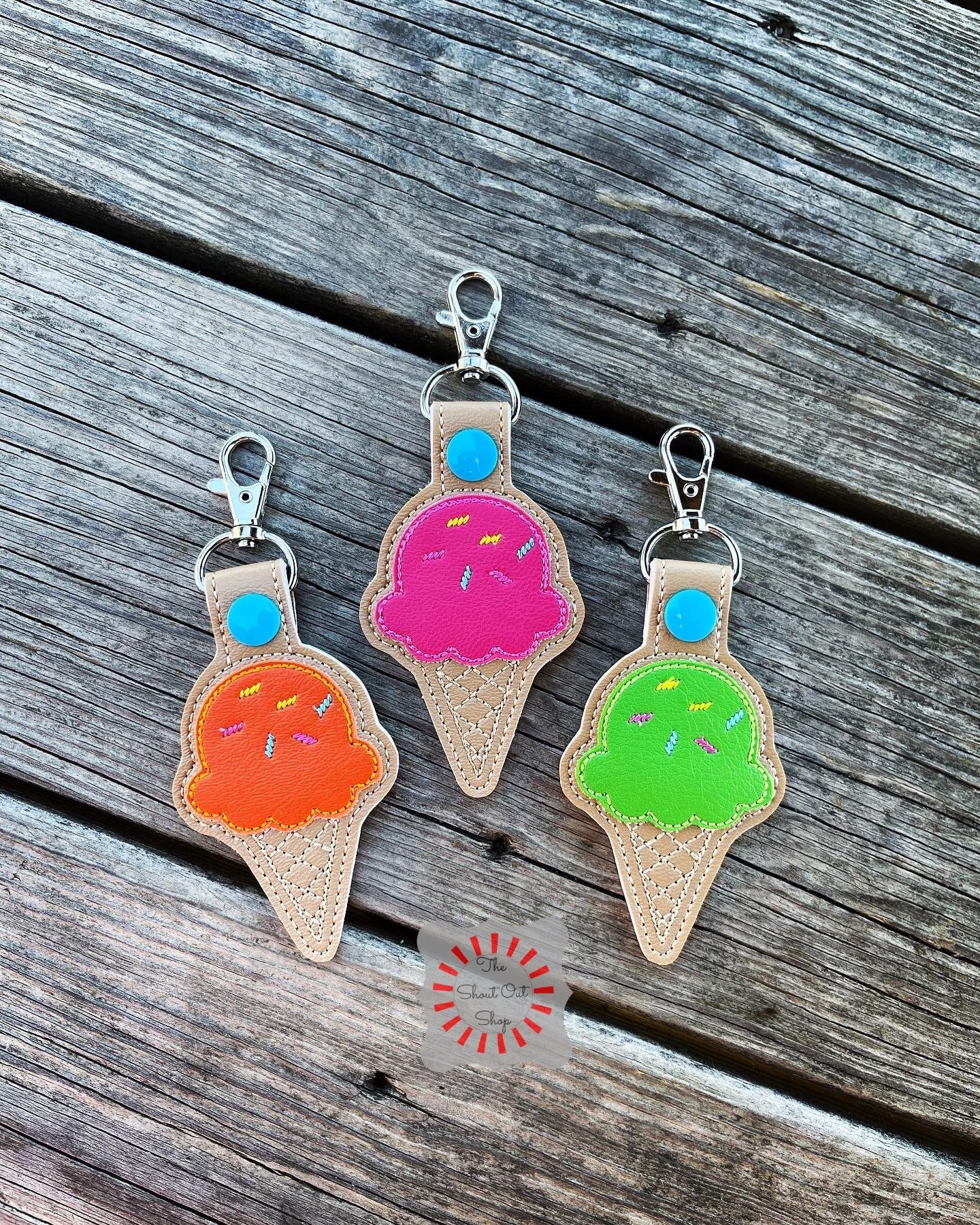 Ice Cream Cone Keychain, Ice Cream Keychain, Ice Cream Cone Keyfob,...