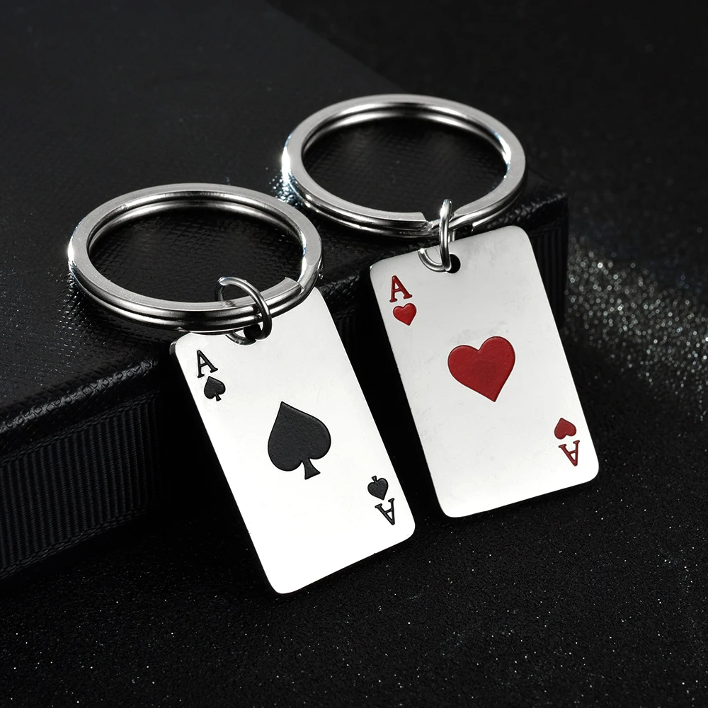 Fashion Lucky Spades Heart Ace Keychain Women Men Stainless Steel B...