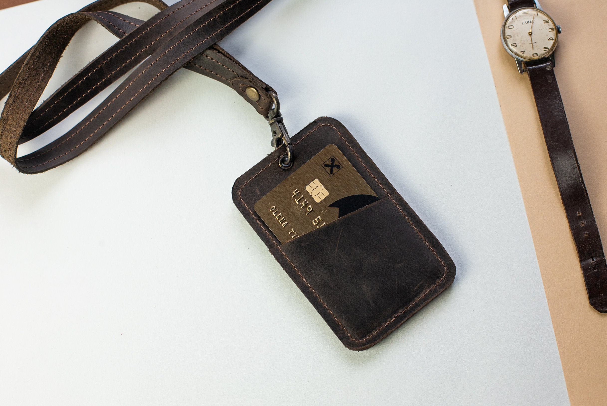 Leather lanyard with id holder,Personalized id badge holder,Id card...