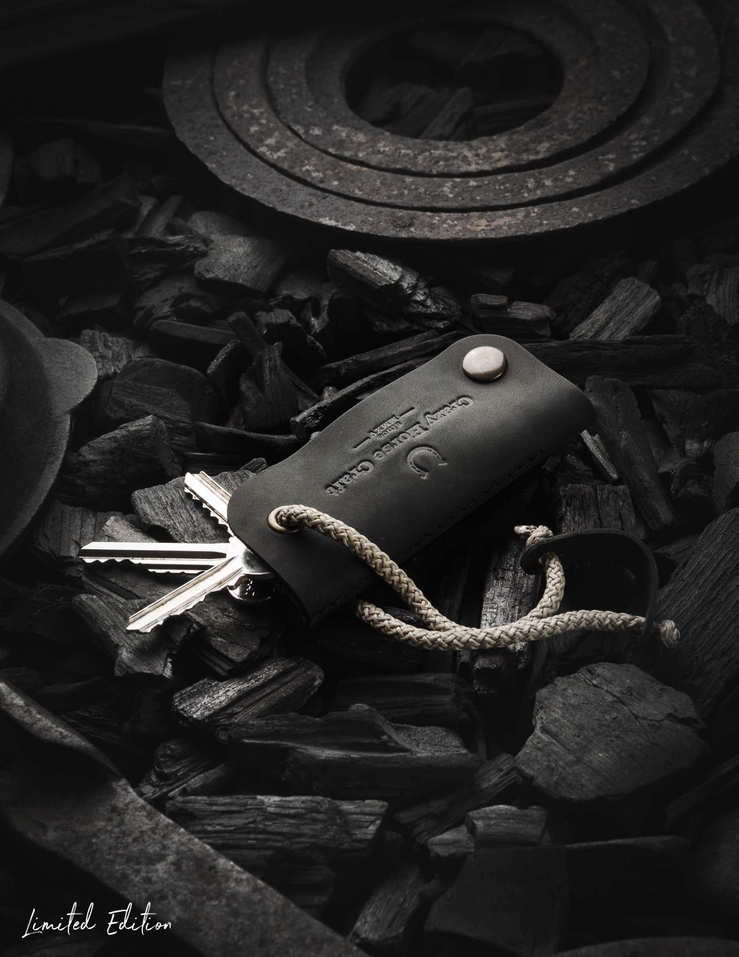 "Limited edition Carbon Black Leather Key Holder, key chain, key fob, key organizer, leather ke...