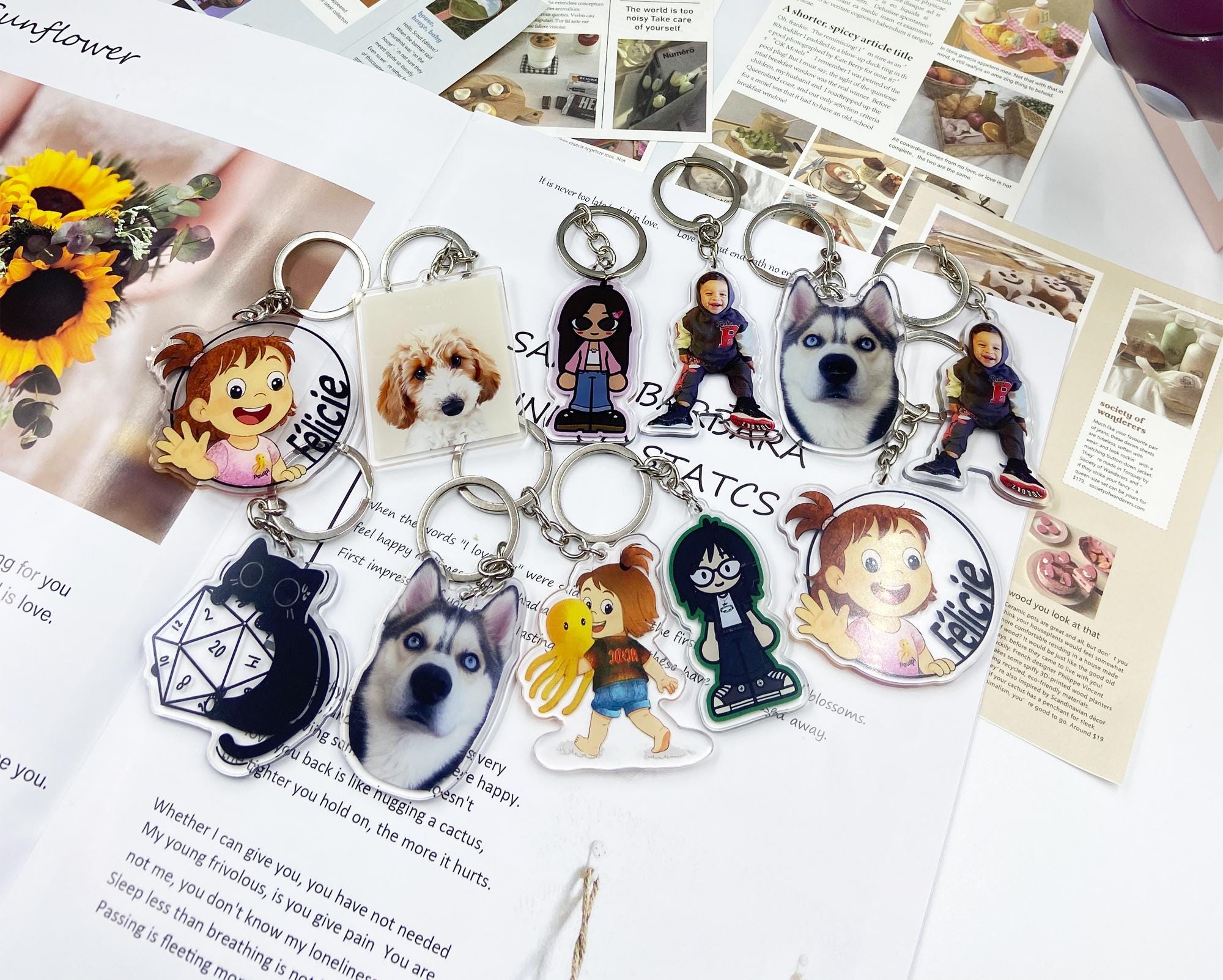 Custom Photo Keychain, Cat Picture Keychain with Picture, Custom Acrylic Charm,Logo Printing Keychai...
