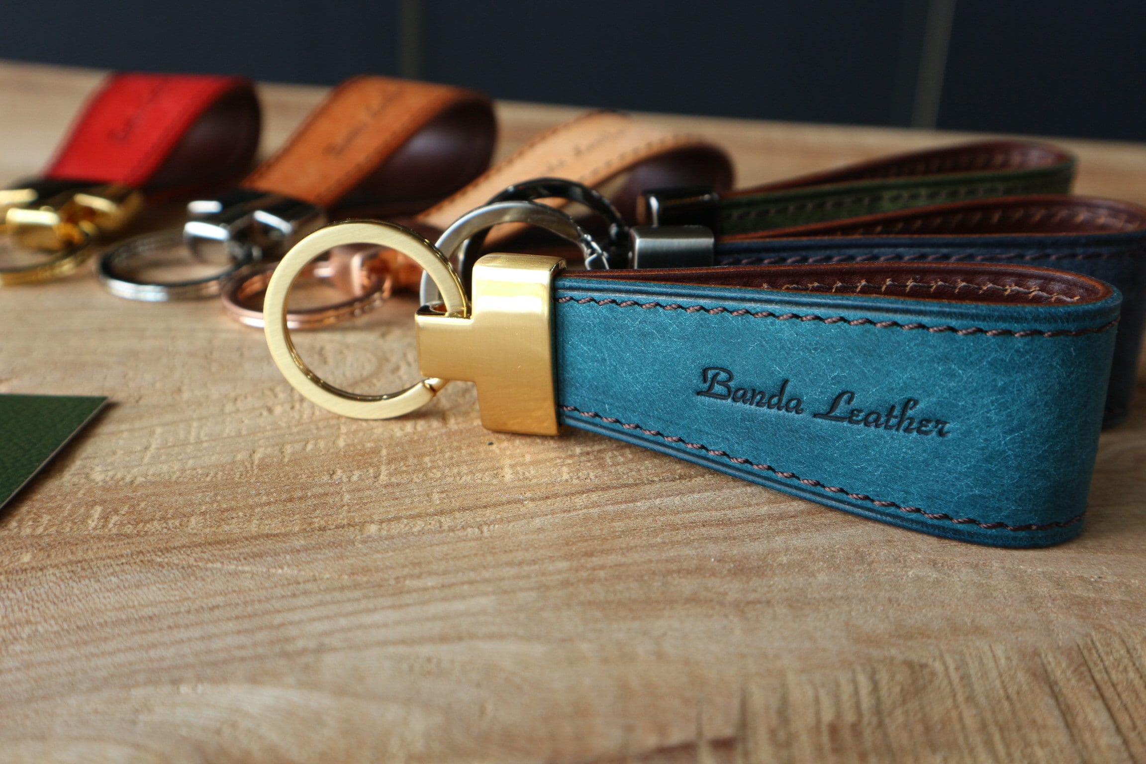 Personalized leather keyring, leather keychains, leather Initial Ke...