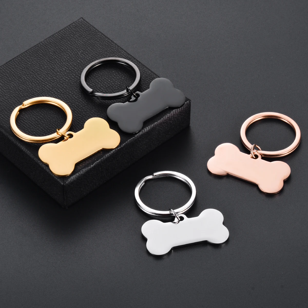 Mirror Polish Bone-shaped Dog Tag Keychain Blank Stainless Steel DIY Pet Collar Accessories Making J...