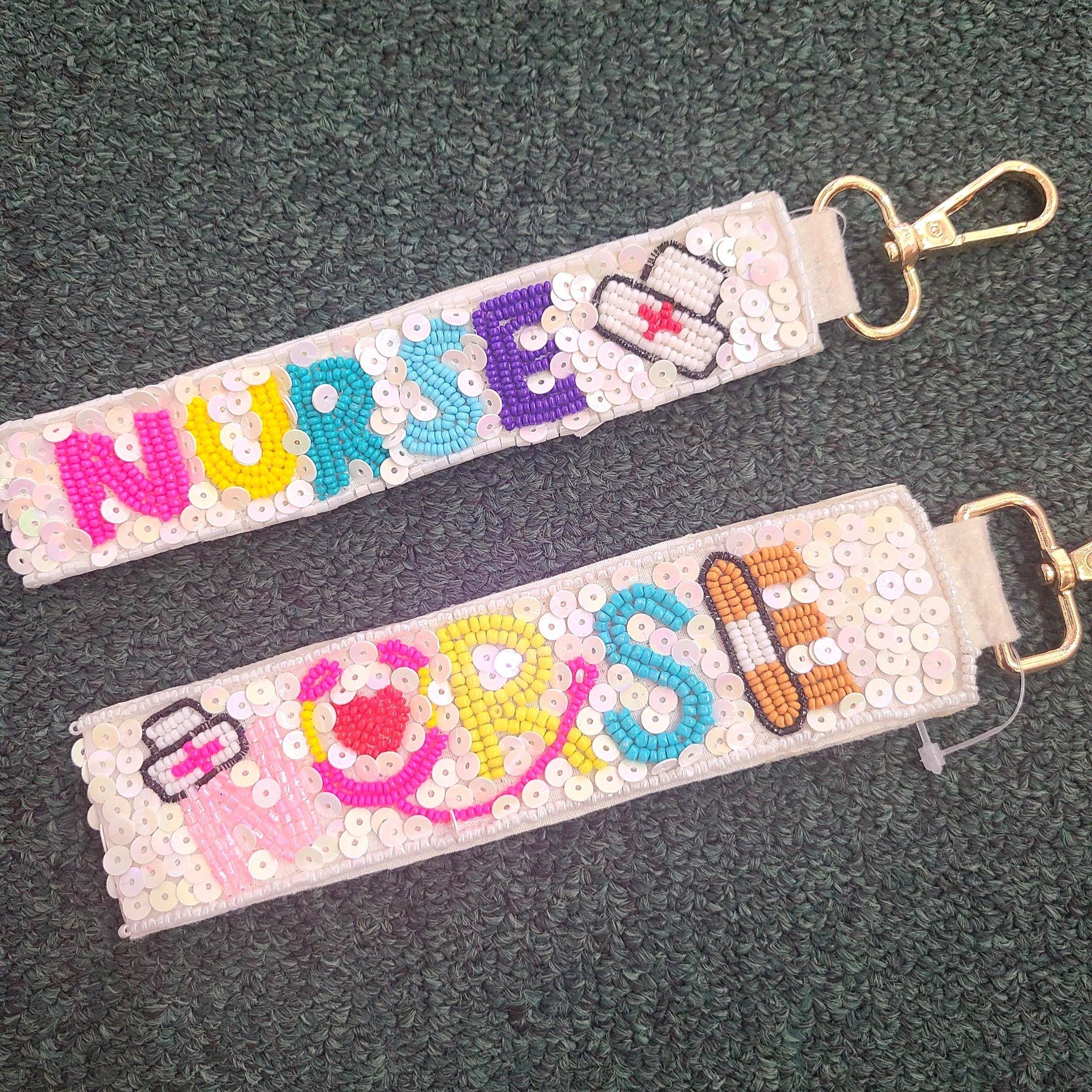Beautiful sequin & beads nurse Keychain. Measures 2.5in x 8 in (including key chain hook). Perfe...
