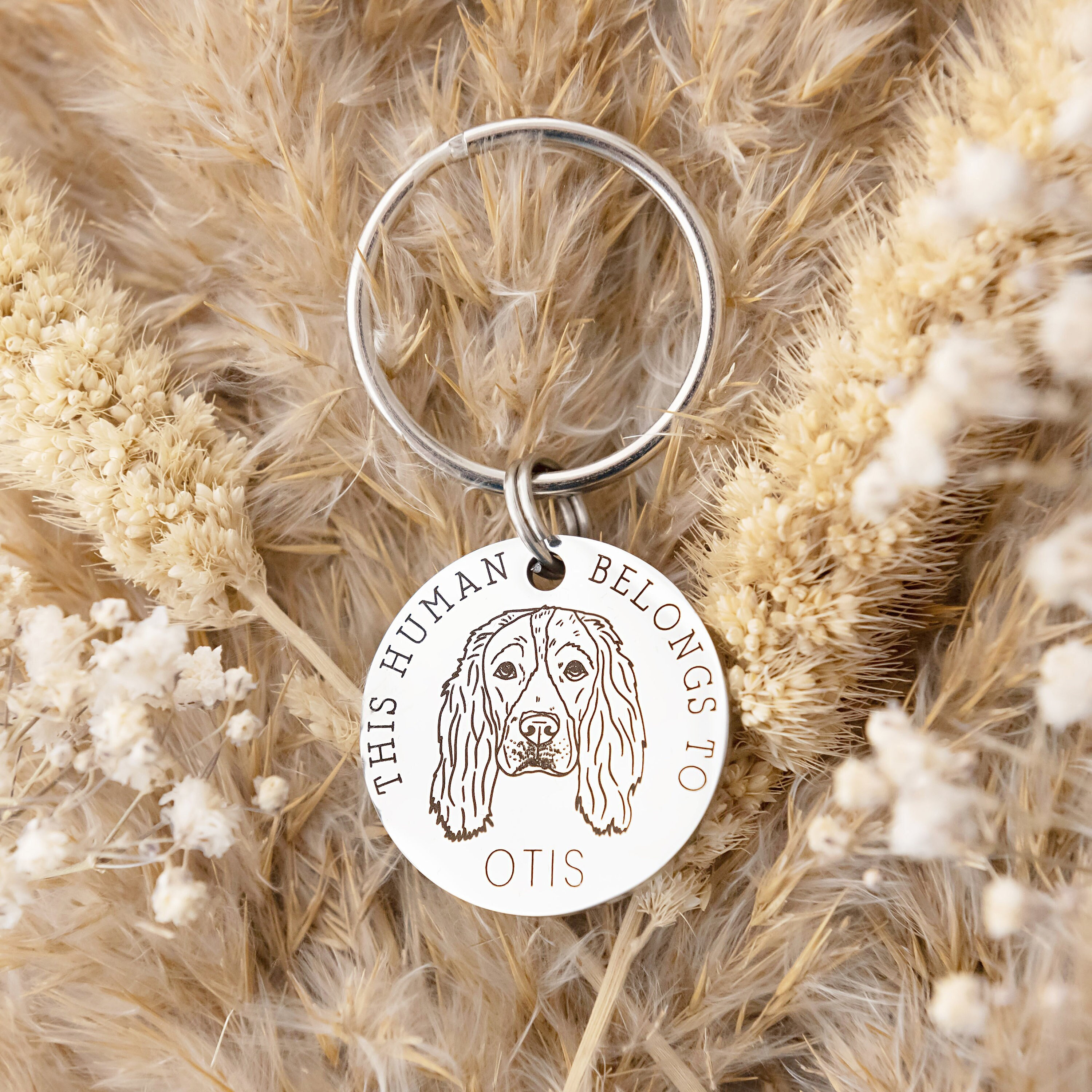 Dog Dad, Dog Mum, This Human Belongs To, Personalised Keyring, Dog Gift, Gift from Dog, Engraved Sta...
