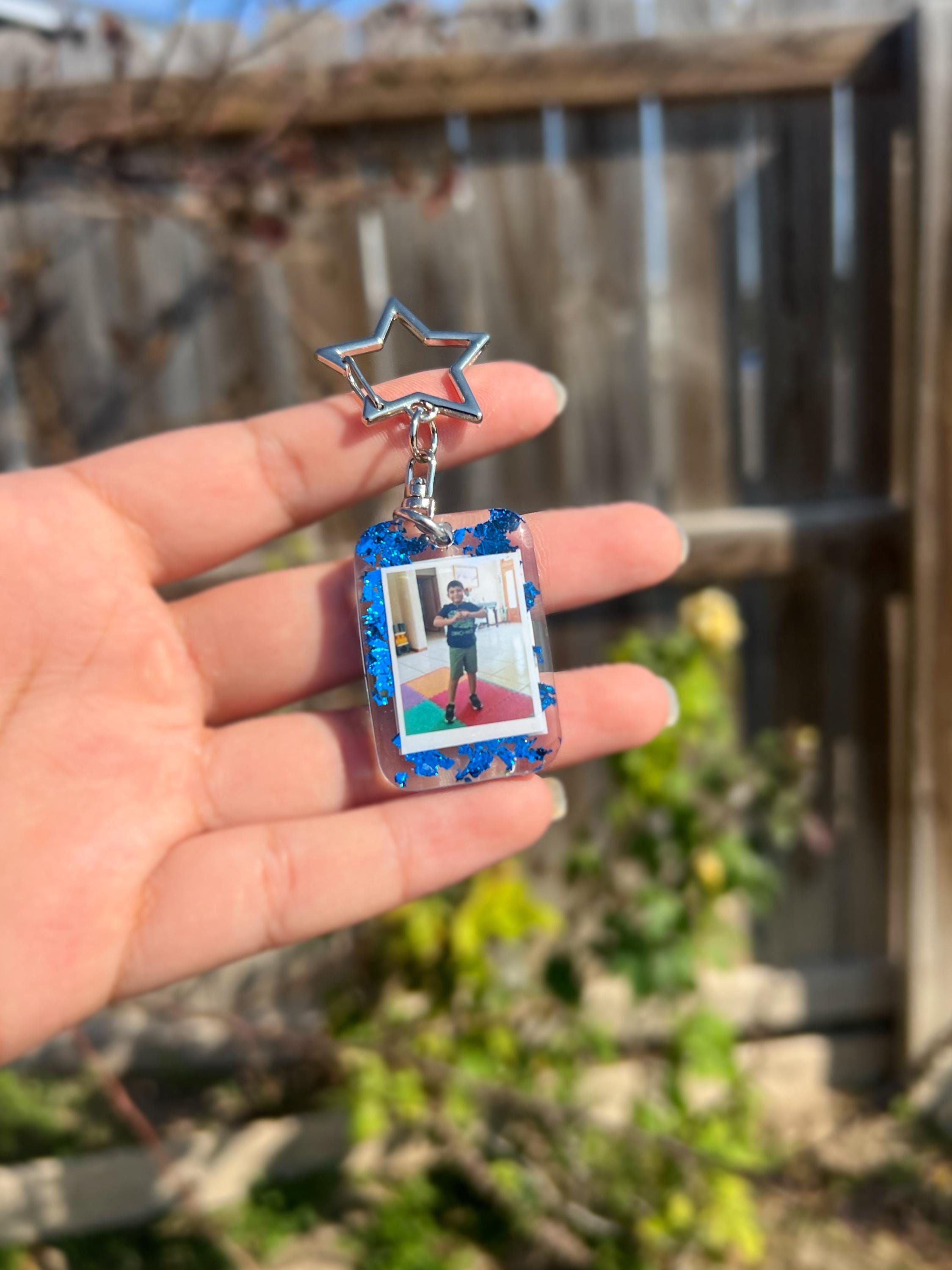Personalized Photo Blue Keychain -Customize w/Your Photo, Resin Pho...