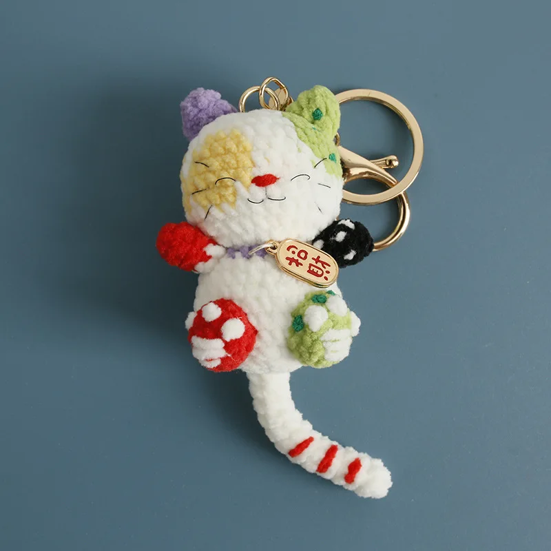 Cute Lucky Cat Doll Crochet Keyrings Handmake Kawaii Kitten Knitted...