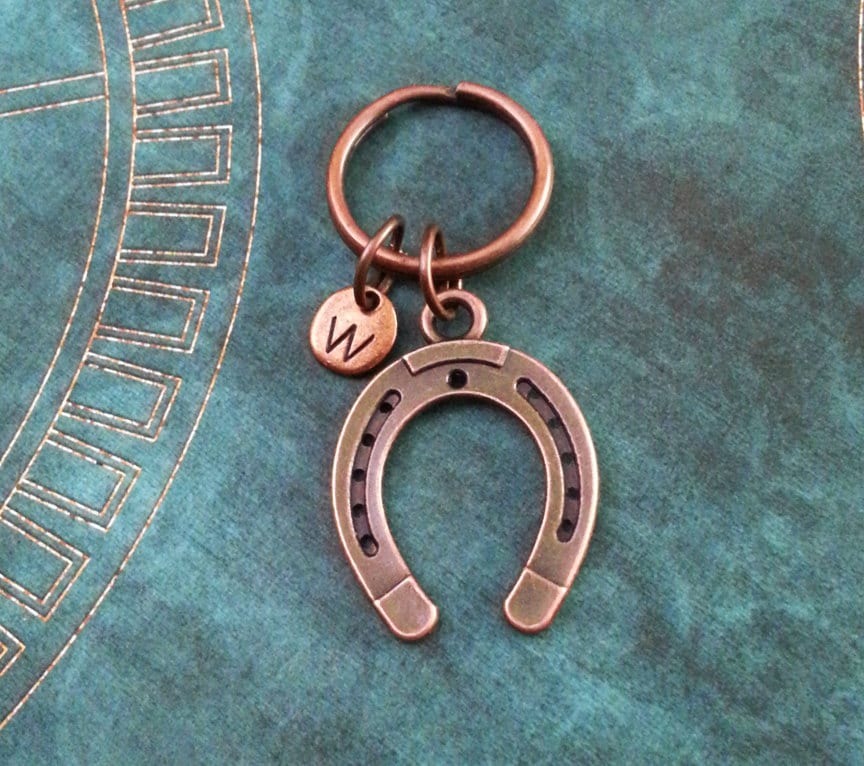 "This listing is for a personalized horseshoe keychain with a hand-stamped initial charm. We ca...