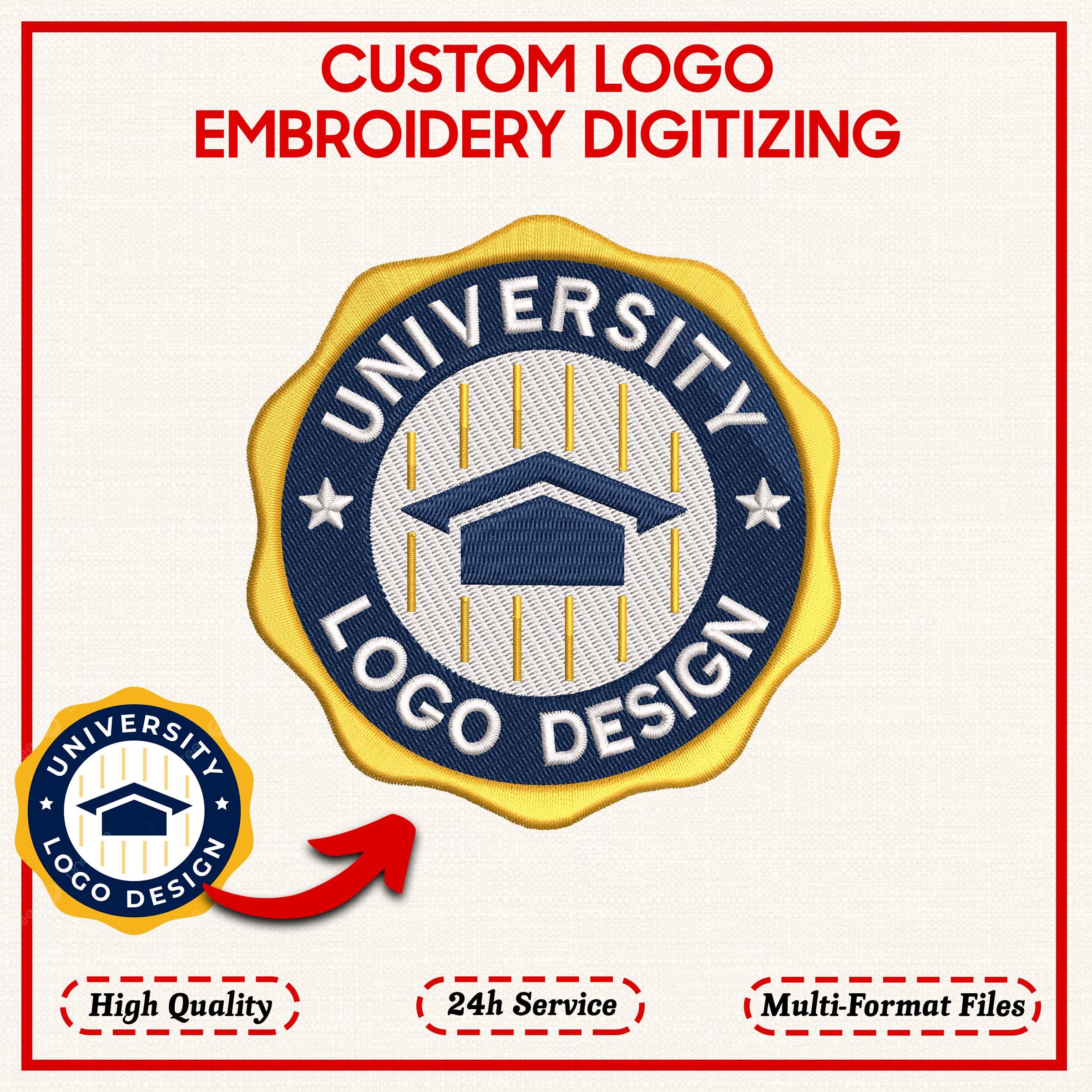 Custom logo embroidery digitizing, university logo embroidery desig...