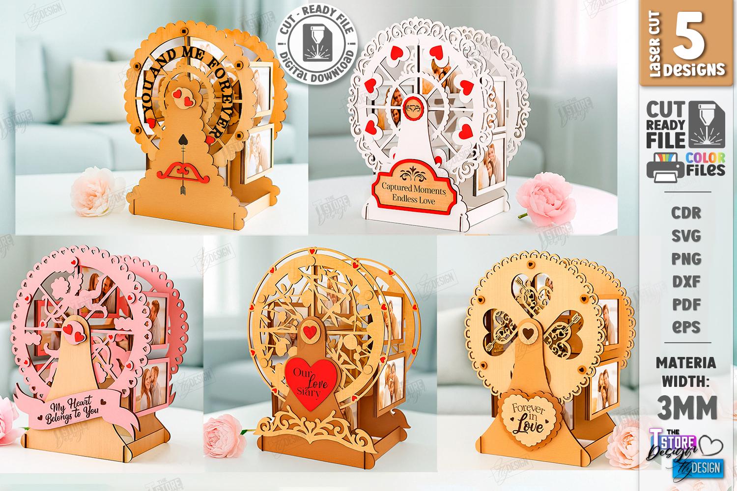 3d wooden Ferris wheel photo frame laser cut bundle, wooden carousel svg, shelf sitter svg, Ferris w...