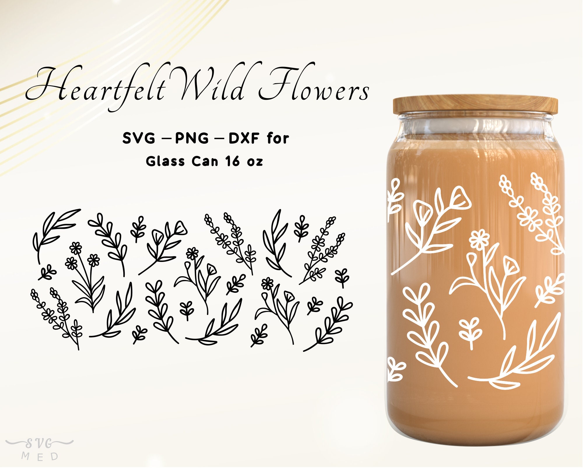 Wildflower Glass Can Svg Glass Can Cup 16oz Glass Can Wrap Svg Libb...