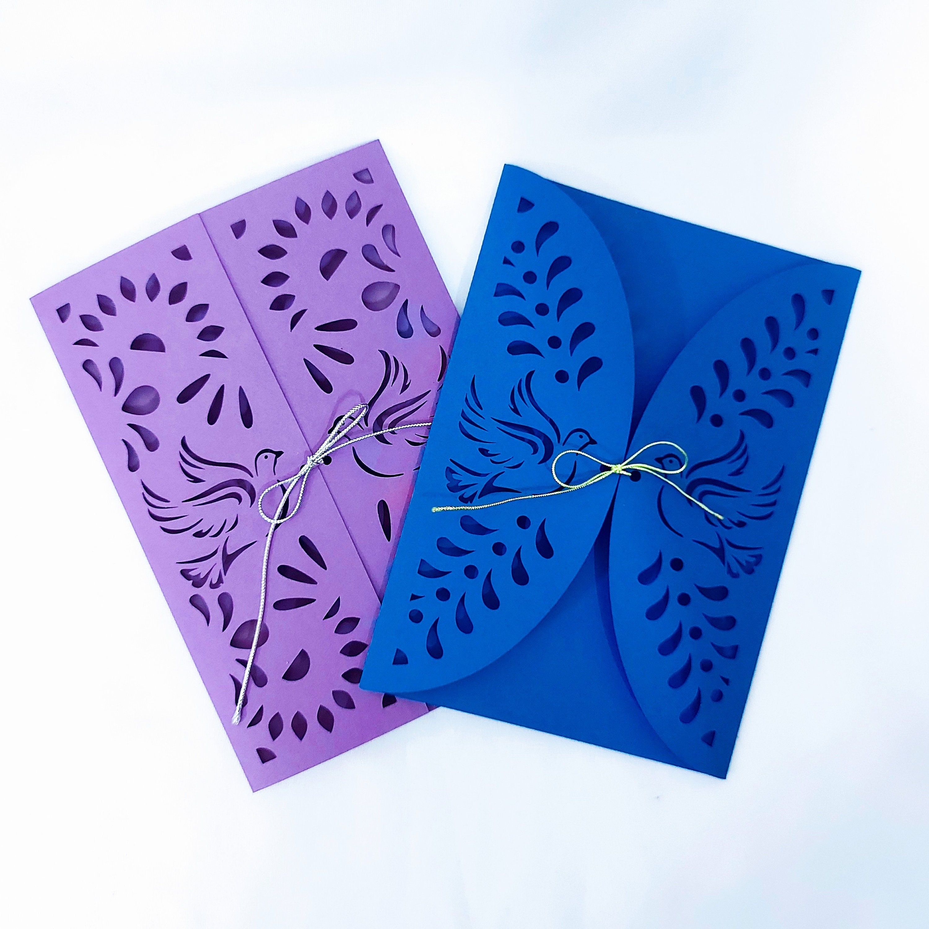 5x7 SVG Laser Cut Wedding Invitation Tri Fold Pocket Card Cricut Te...