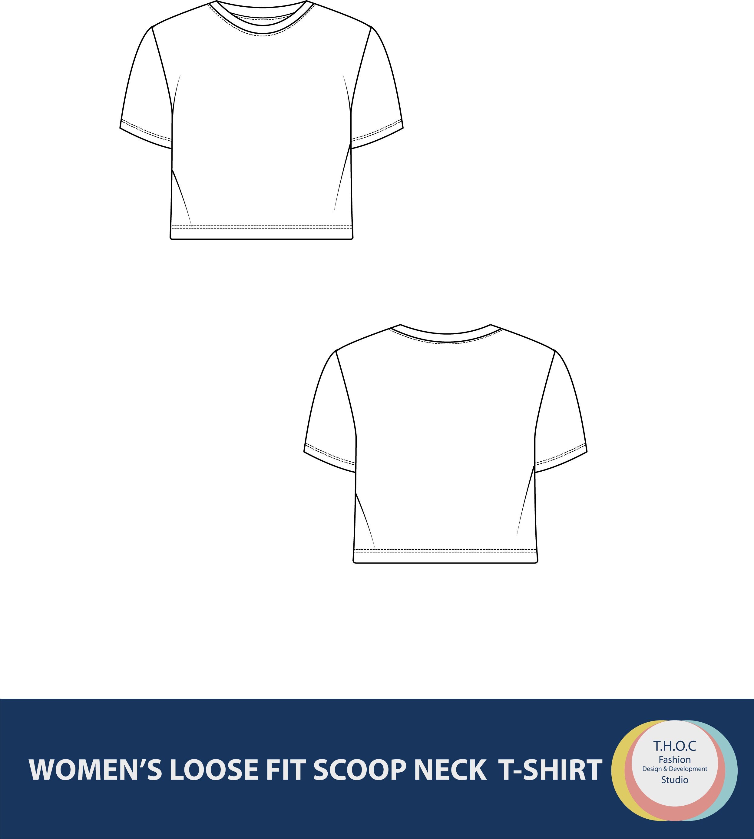 Digital fashion flat women's loose fit scoop neck t-shirt. Invaluable resources for your clothing co...