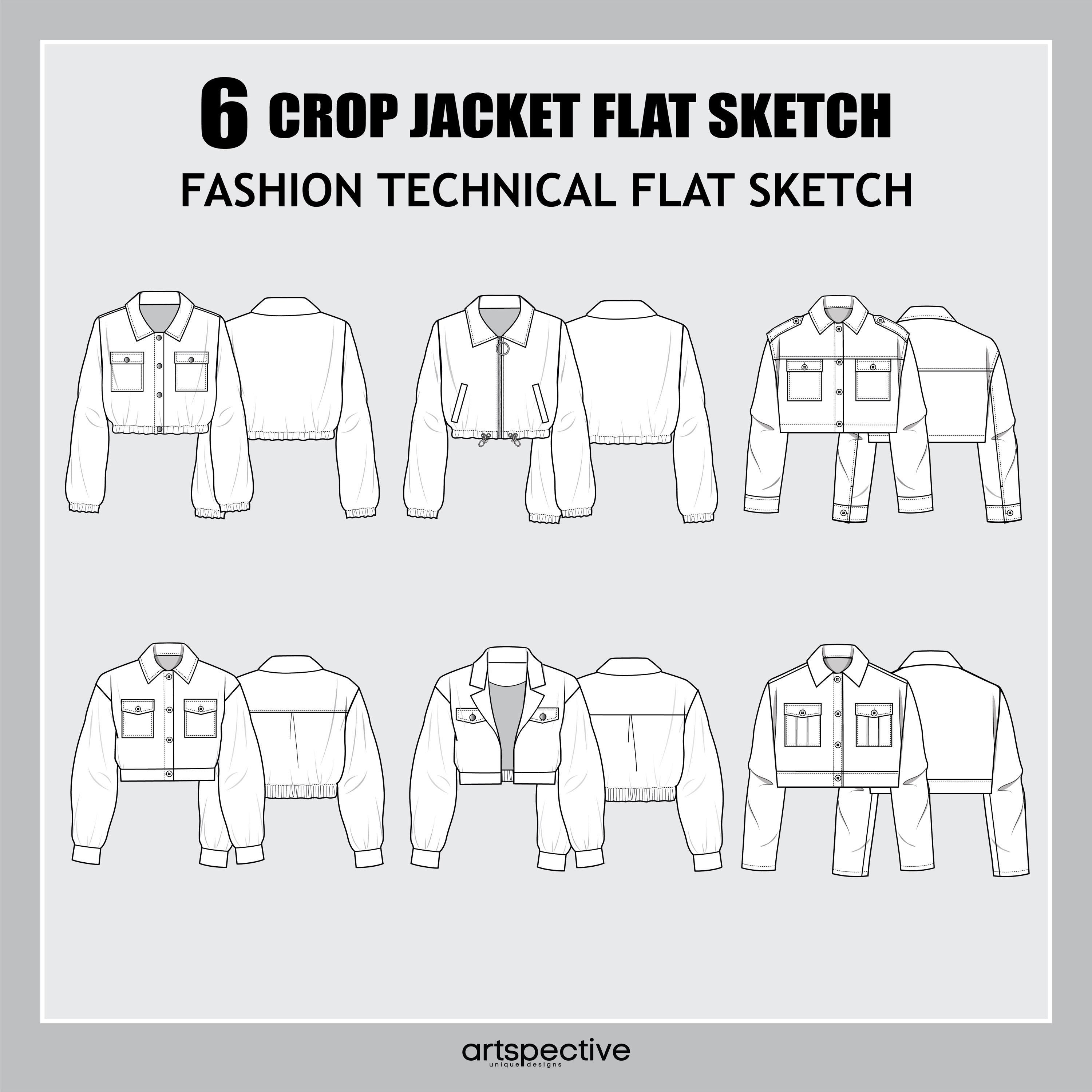 Womens 6 pcs Multi Crop Jacket Fashion Flat Sketch - Fashion Vector...