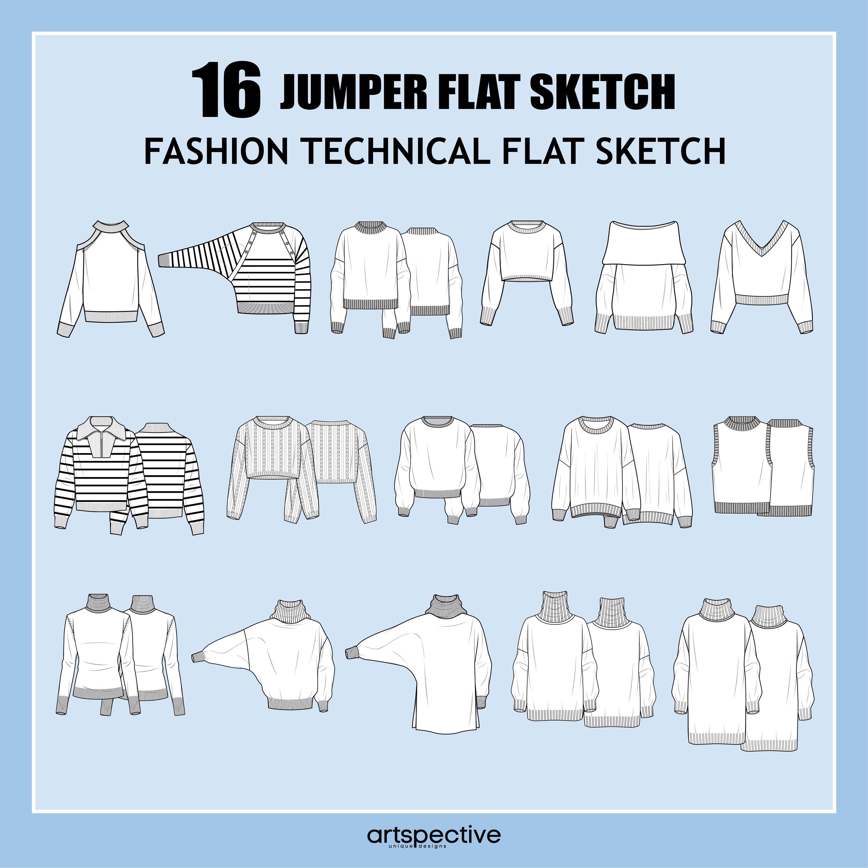 Womens 16 pcs Jumper Fashion Flat Sketch - Fashion Vector Sketch - ...