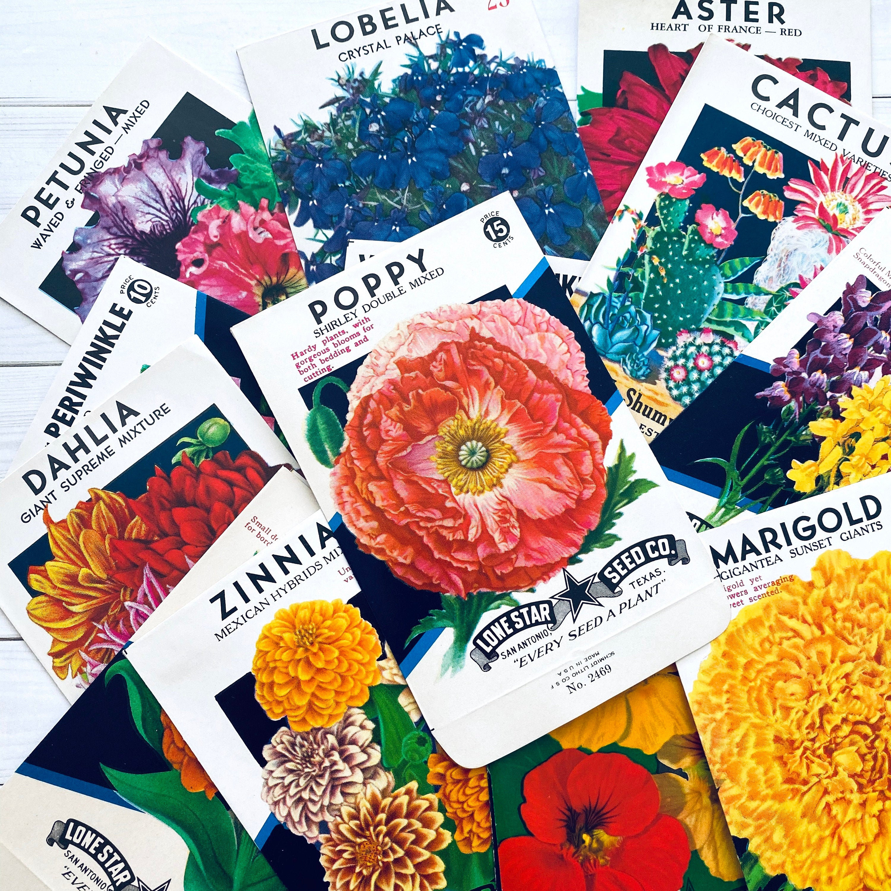"Note: These seed packets are EMPTY. Vintage Flower Seed Packets featuring imagery of various f...
