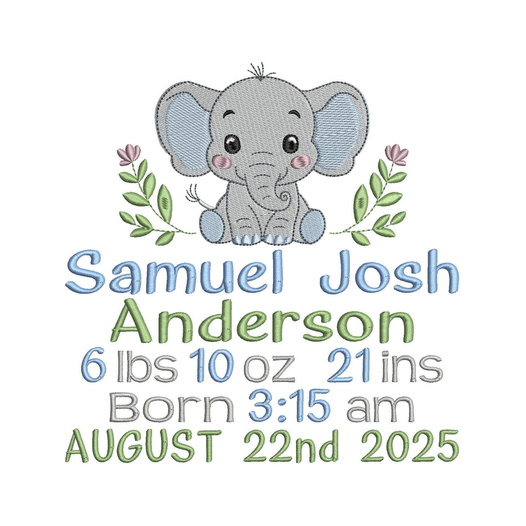Baby Birth Template, Birth Stats, Baby Elephant, Floral, Baby Boy A...