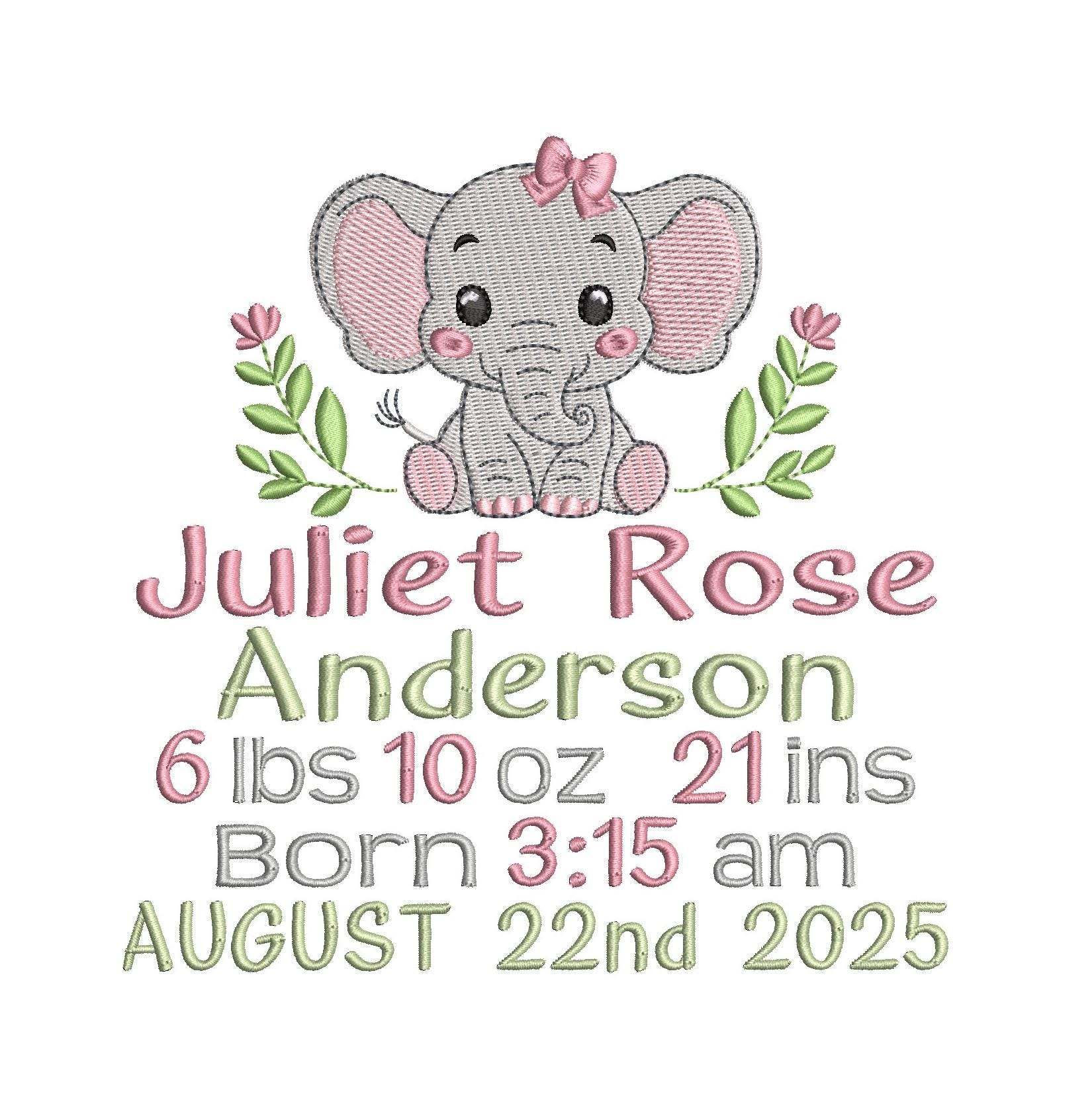 "Welcome to Pink Willow Embroidery This is a TEMPLATE for a baby girl birth announcement machin...