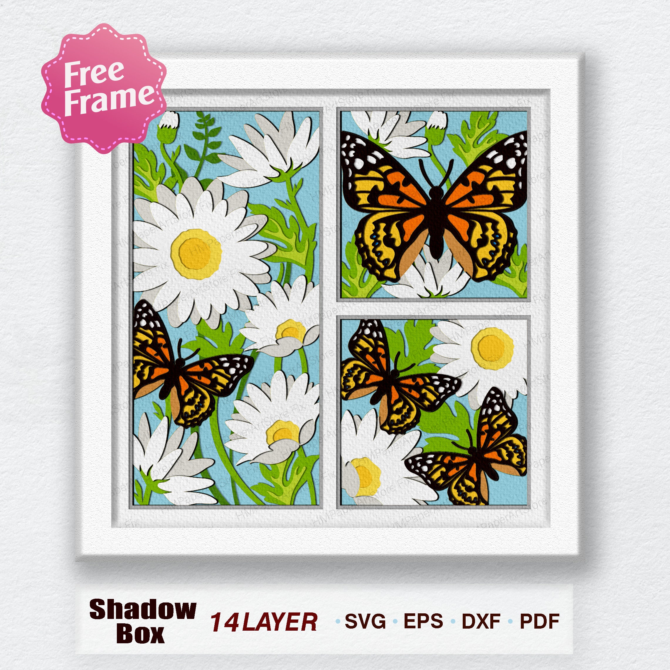 Daisy and Butterfly Shadow Box Svg, Daisy and Butterfly 3D Box, Dai...