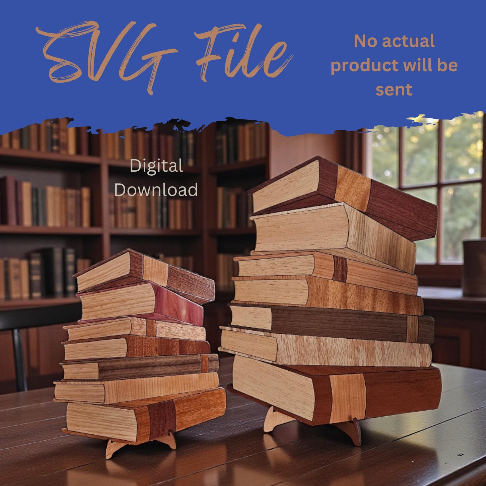 Wood Grain Stack of Books Wall/Shelf Art 2 sizes with easel - SVG L...