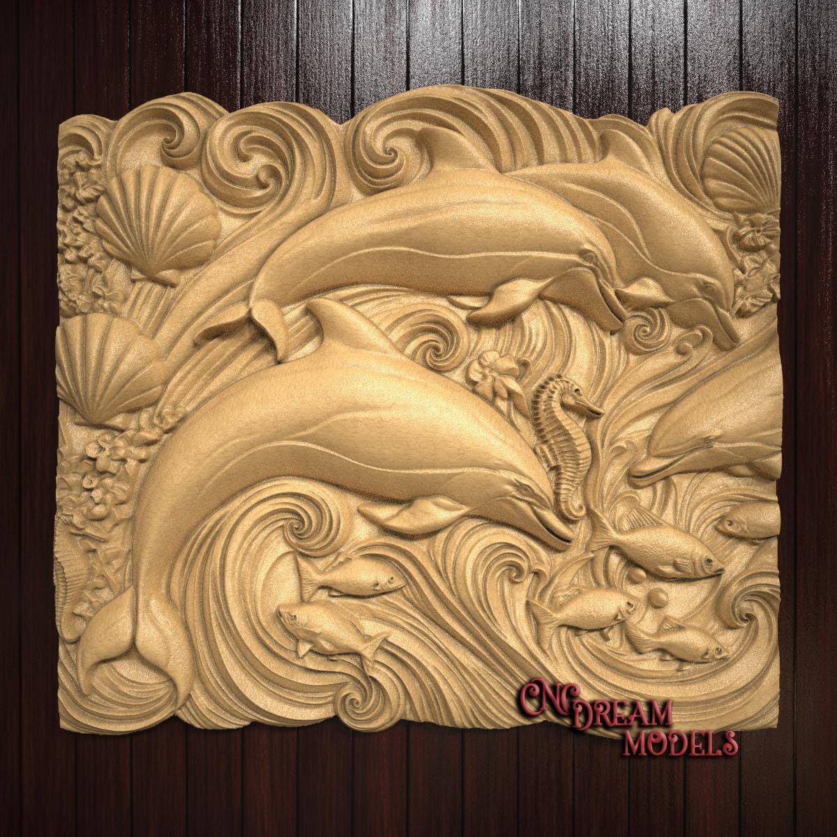 Dolphin wall art, 3D Relief CNC Router Carving File | STL Relief Fi...