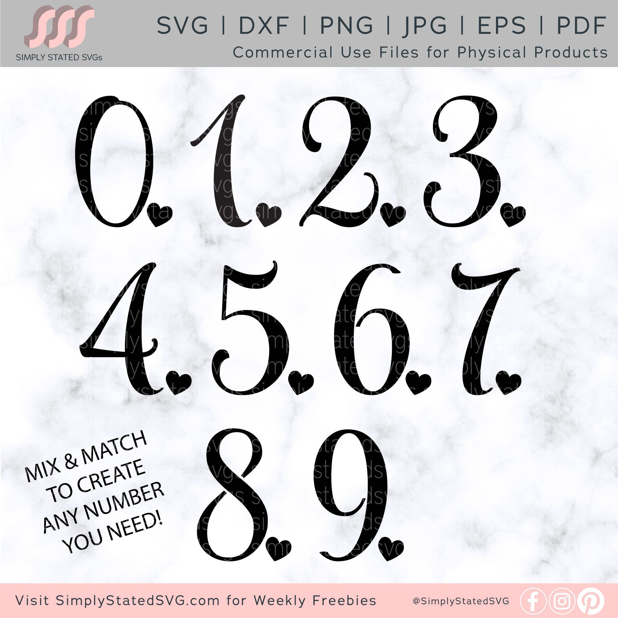 Numbers SVG Bundle Number with Heart SVG Mix/Match Numbers Design f...