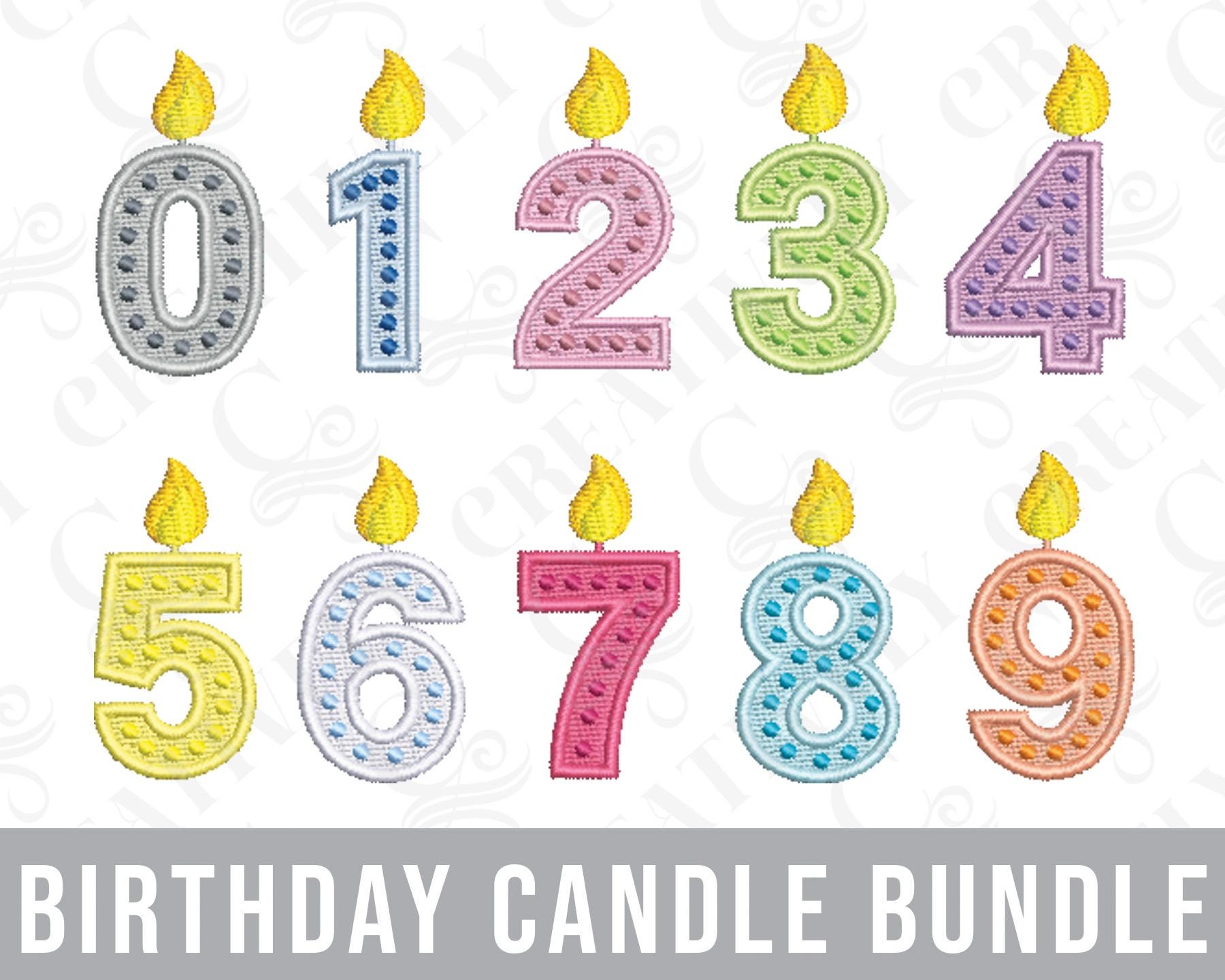 Number Birthday Cake Candle Embroidery Design Set Bundle Digital Download: Includes one zipped folde...