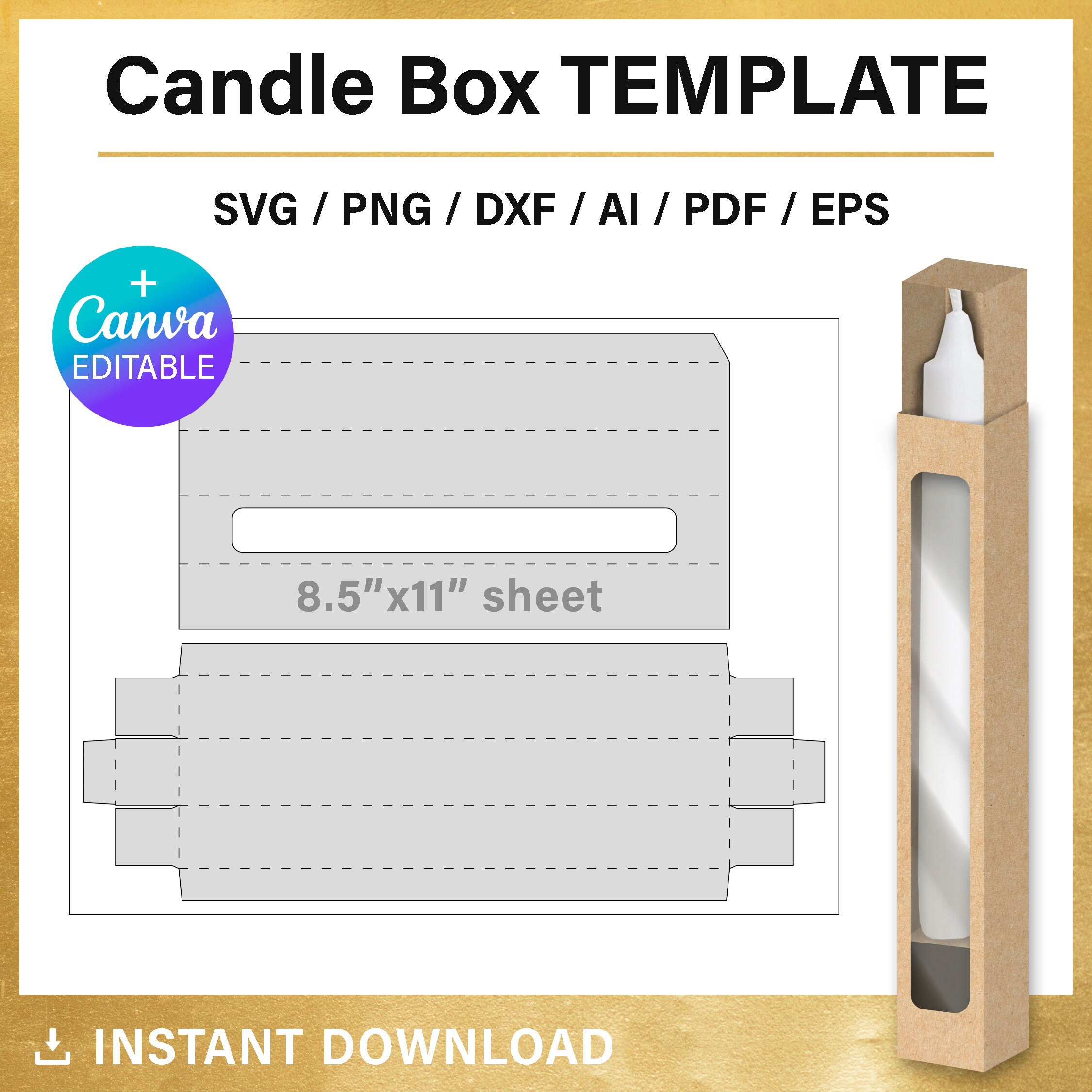 Tall Candle Box Blank Template with window, DIY, candle gift box, p...