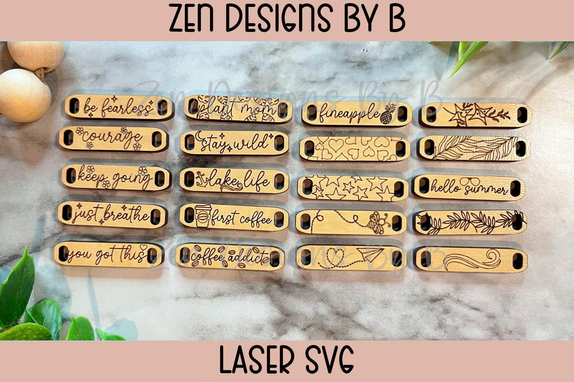 Bracelet Charm Bundle of 20 Laser SVG, Summer, lake life, stay wild, be fearless, keep going, plant ...