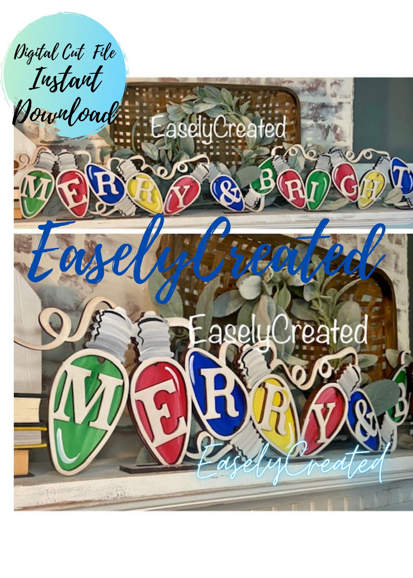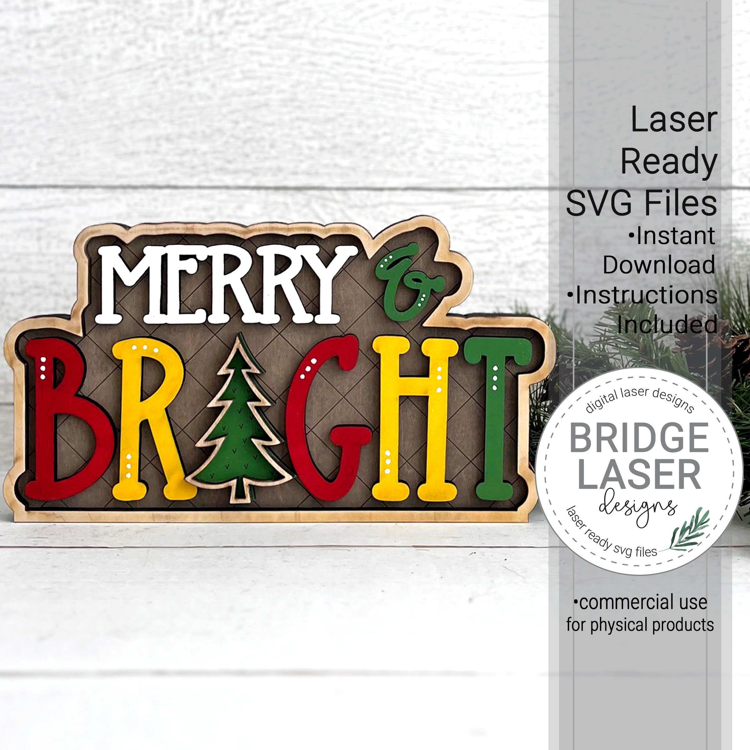 Merry And Bright Shelf Sitter Laser File, Christmas Laser File, Win...