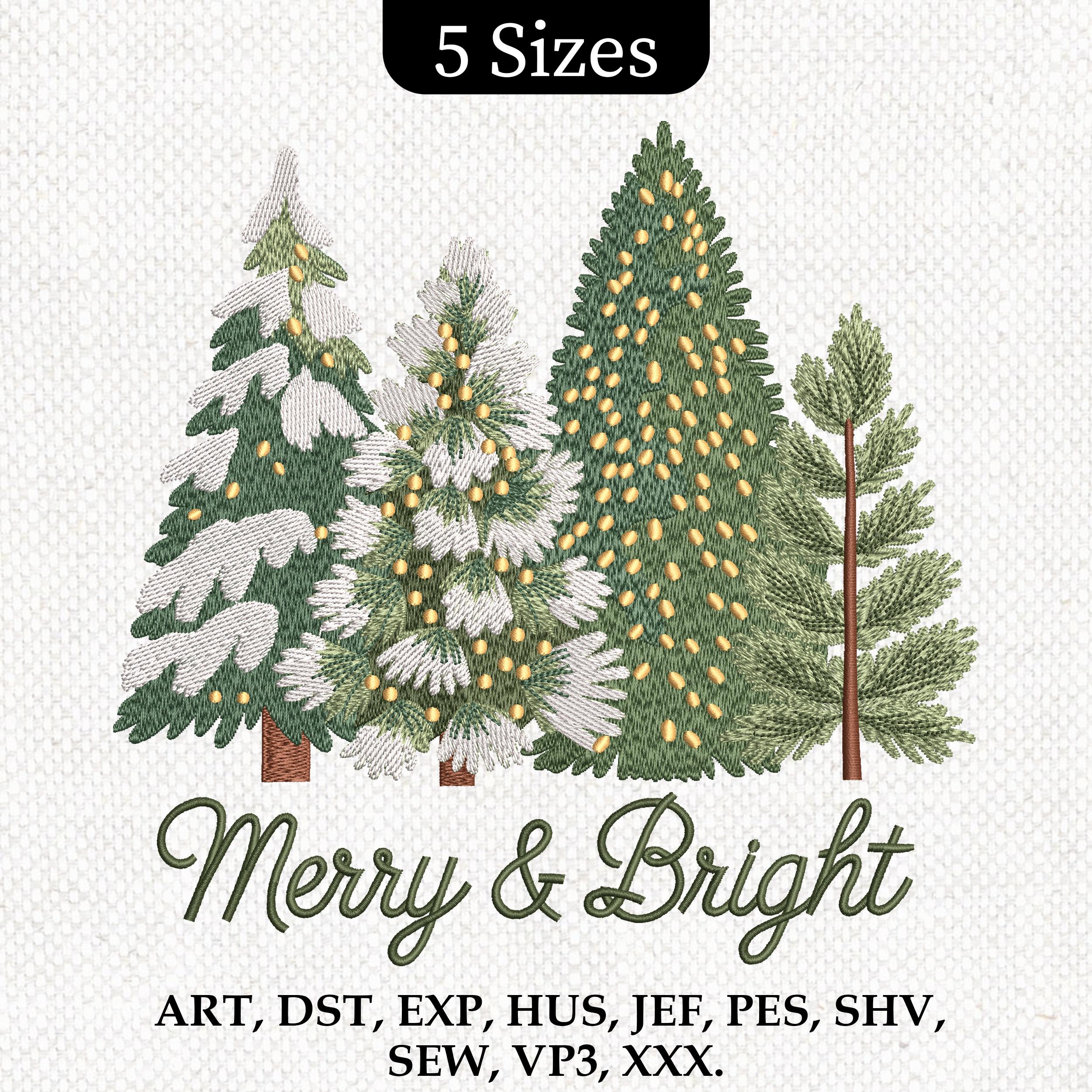 Merry and Bright Trees Embroidery, Christmas Tree Embroidery Design...